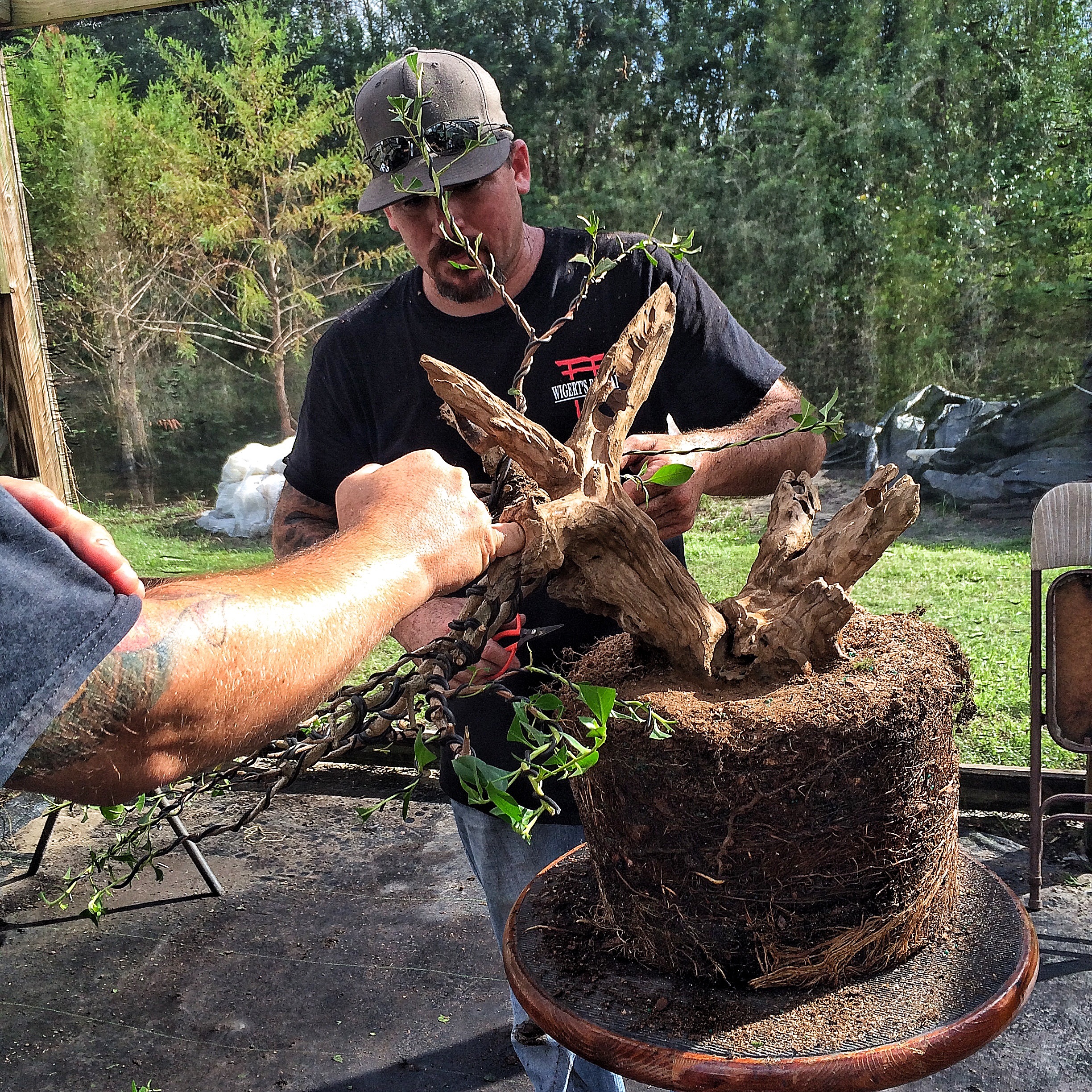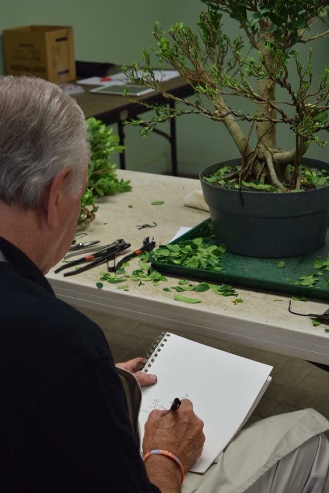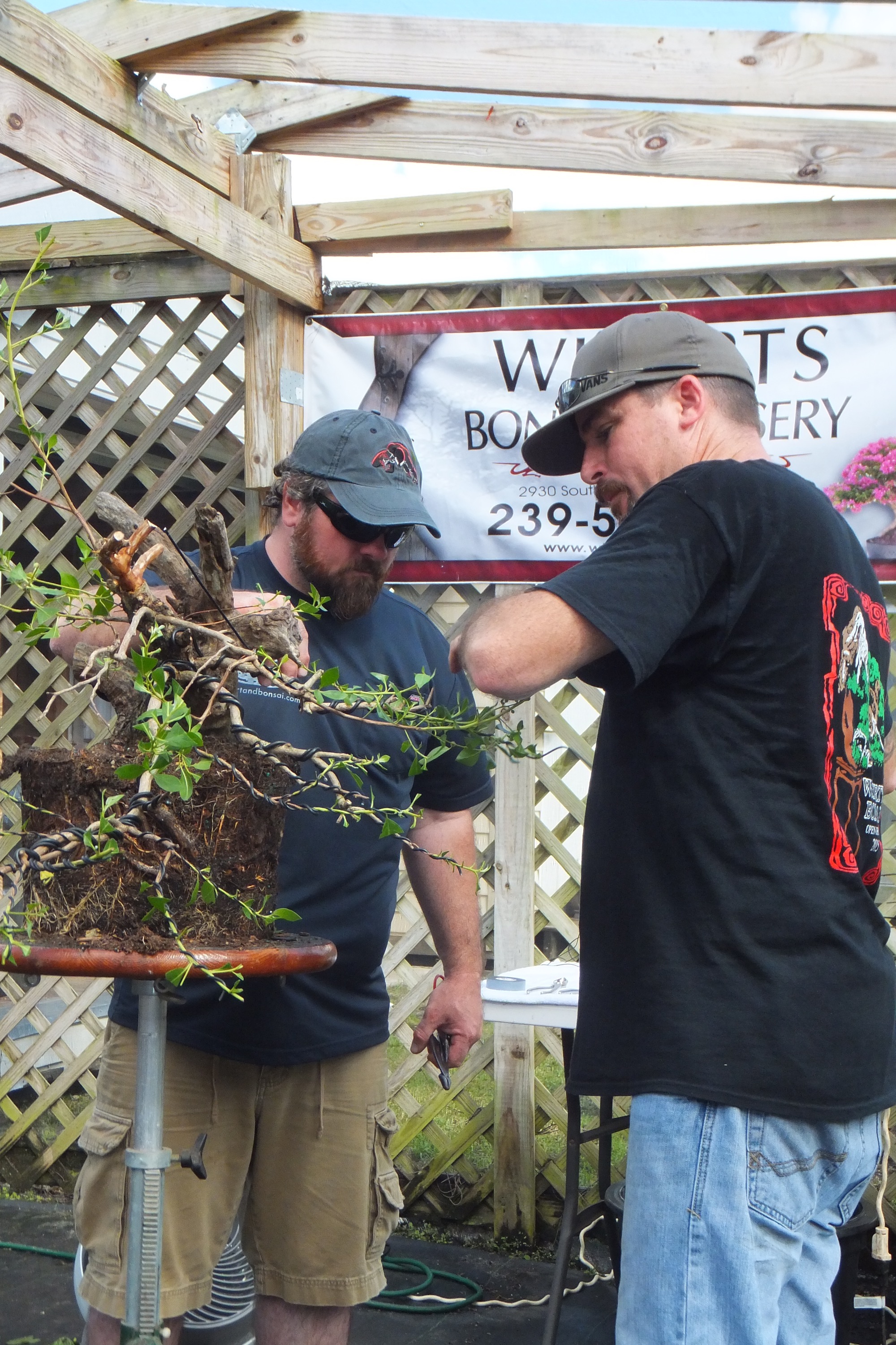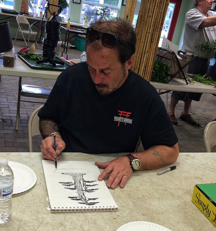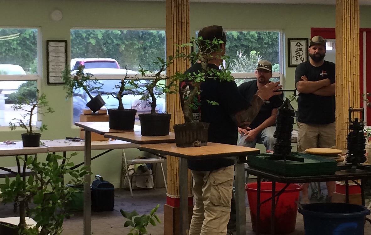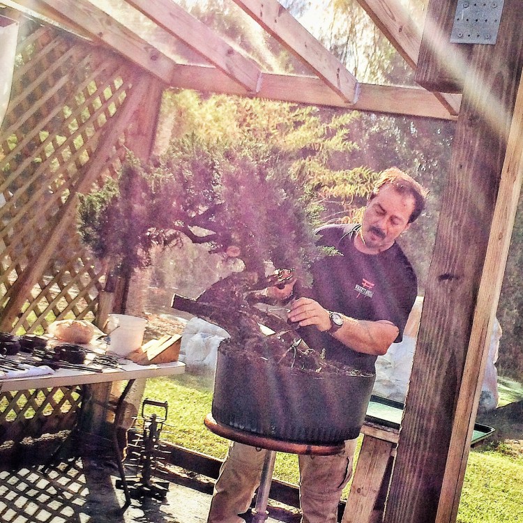 On the schedule for today was a workshop that Evan was taking with Ed Trout, the Gentleman of Bonsai. These three pics are by Ed’s sister, Pamela.