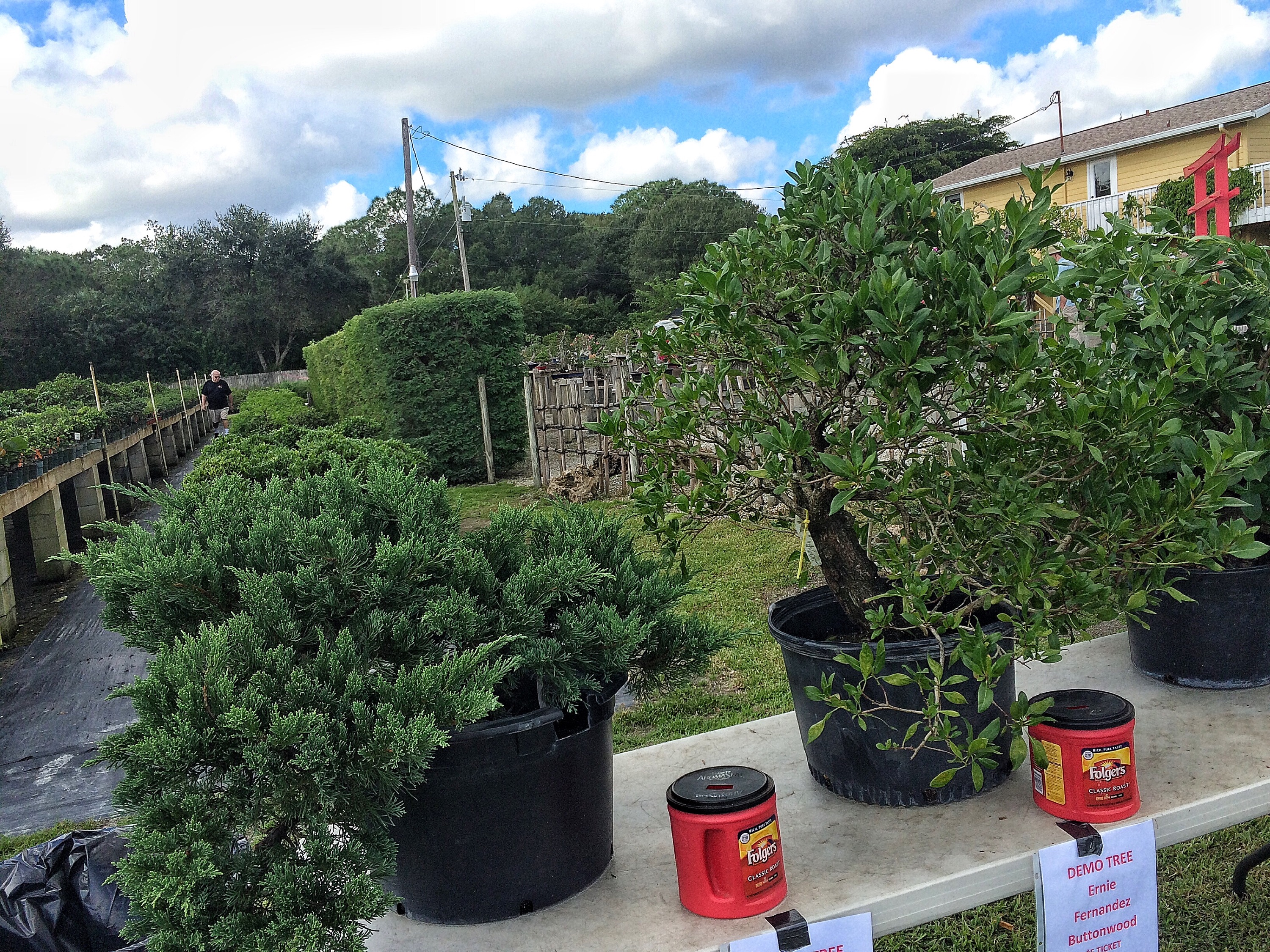The raffle lady, Angela, peddling hopes and dreams of bonsai raffle victory to all the attendees. You can’t win, after all, if you don’t have a ticket. She’s really good at her job. As you can see.