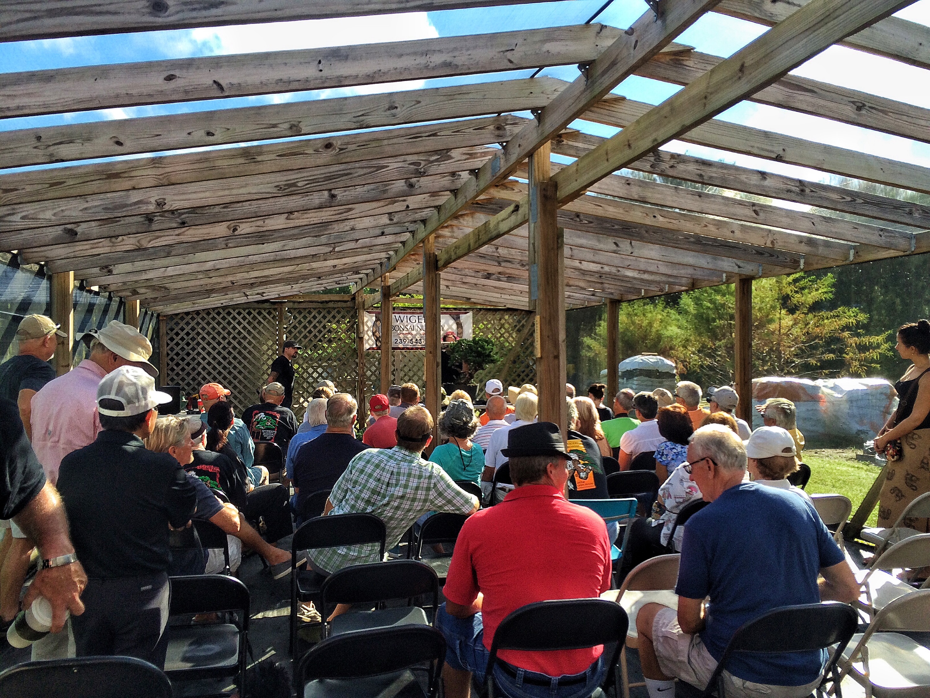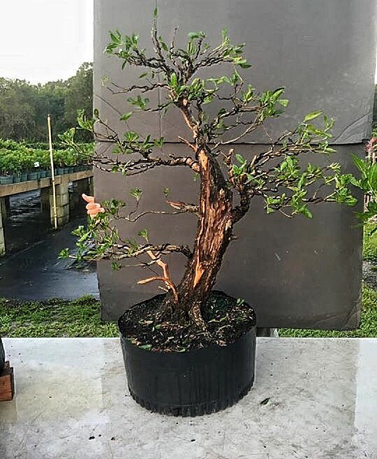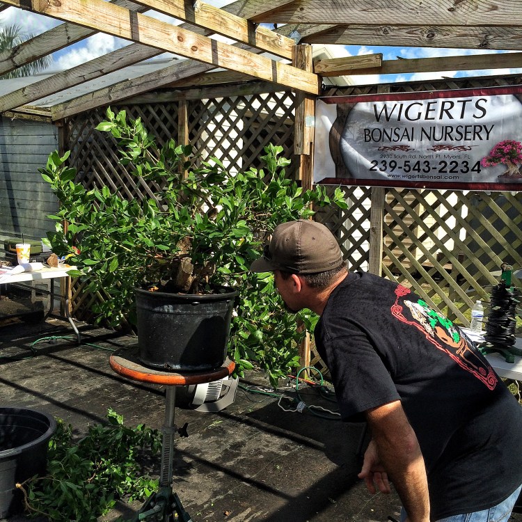 Anyway, crepe myrtles are used often in the Florida landscape and this is a big one, as I might have said already. Ryan developed it for years. Then he gave it to me; he wasn’t able to take care of it, with all his traveling and superhero-ing. I couldn’t take it and keep it though. I told him I’d take care of it until he could again, or we found a buyer. Then, after the alien invasion was thwarted and his half brother was imprisoned, he was able to take it back. It’s been a few years but he finally found a buyer. In California. But Ryan had no way to ship it. So it went to Schley’s Nursery in Deland and then back to me and then, from my nursery, I was to take it to Wigert’s. Erik is driving to California next spring, to deliver it to Nathan. Seems convoluted but it’s simple really. And the excuse for taking the tre was the 2015 Wigert’s Bonsai open house.