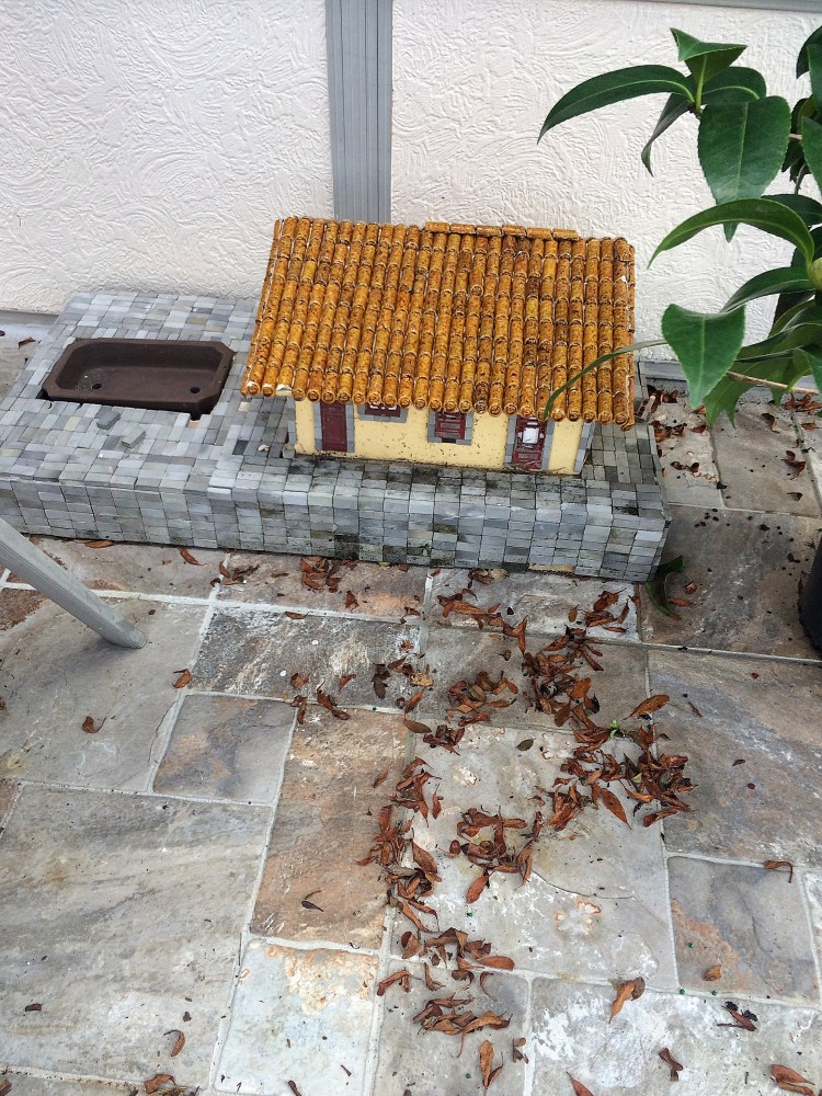 I had two stops (plus that tiki man to deliver) before the open house. First, an initial consultation with Marty involving building a landscape scene with this house-