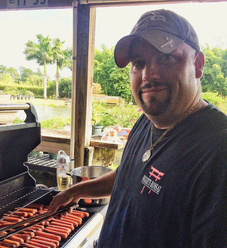 Then it was time for lunch. Erik gives away free hot dogs for those so inclined. Tony, my brother from another mother, handles the wieners.
