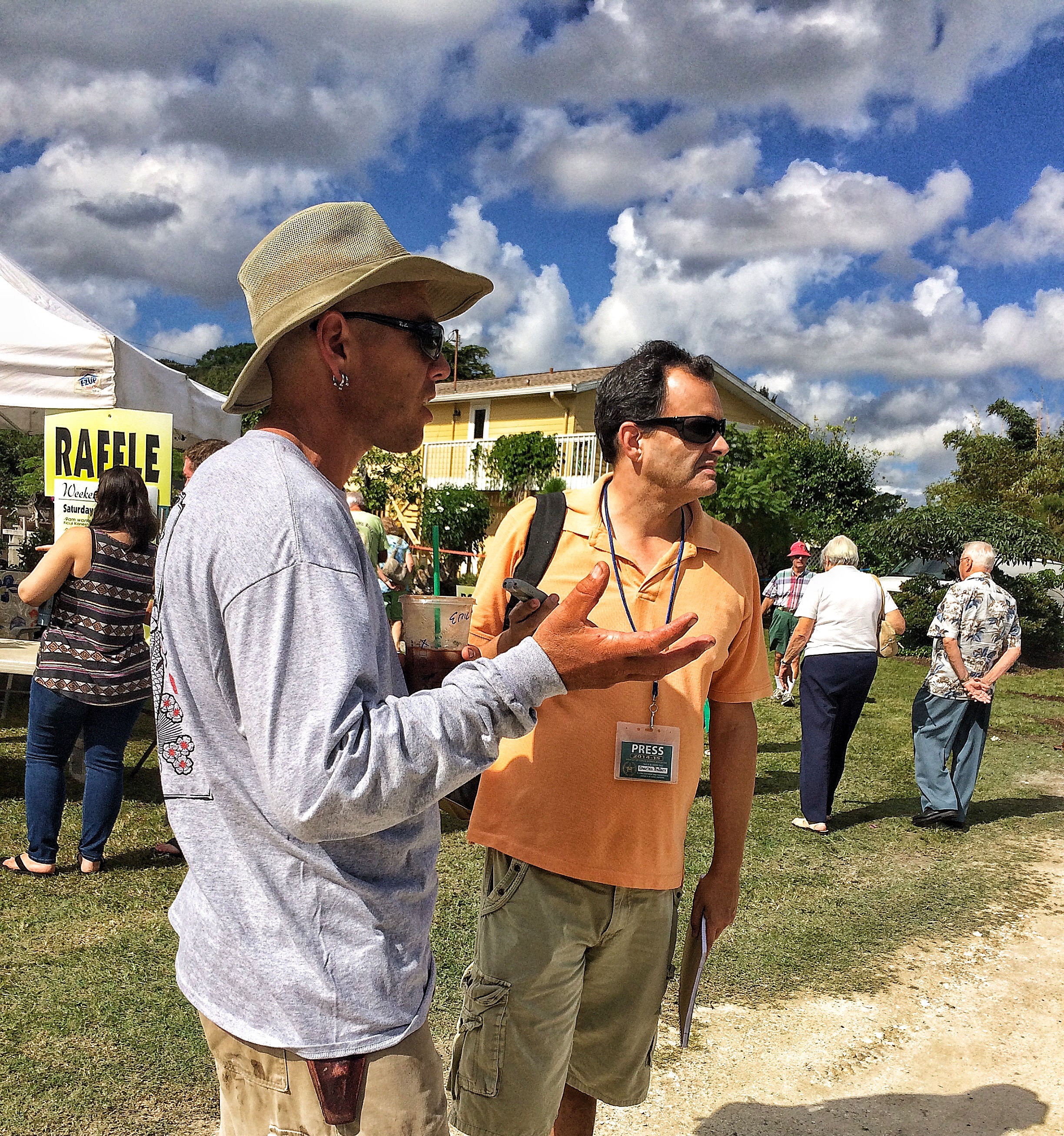 The event has gotten so big that there was even press coverage. Here’s Erik, answering questions and, of course, sending the reporter towards the free food, cuz that’s what reporters look for first.