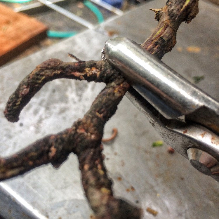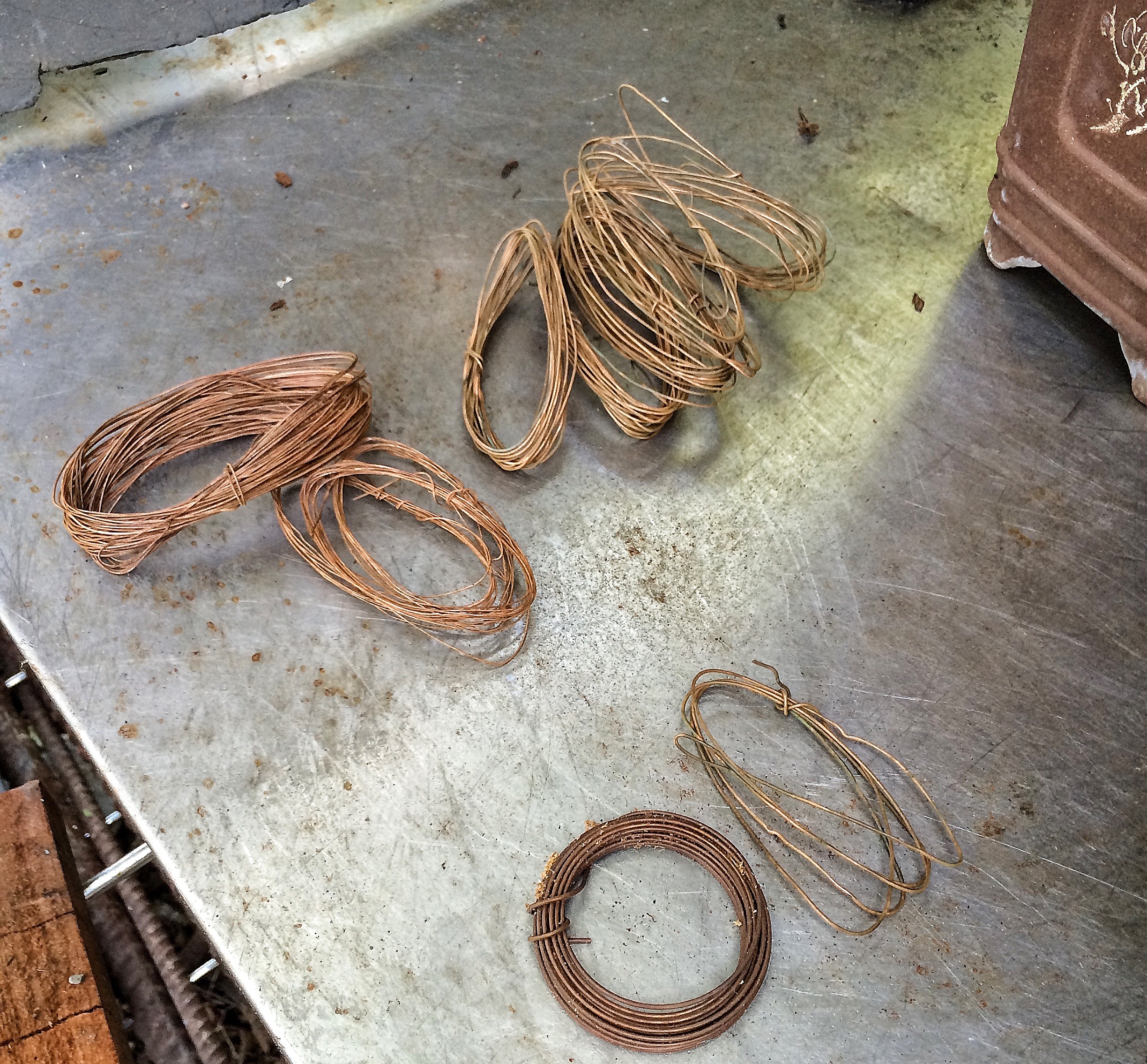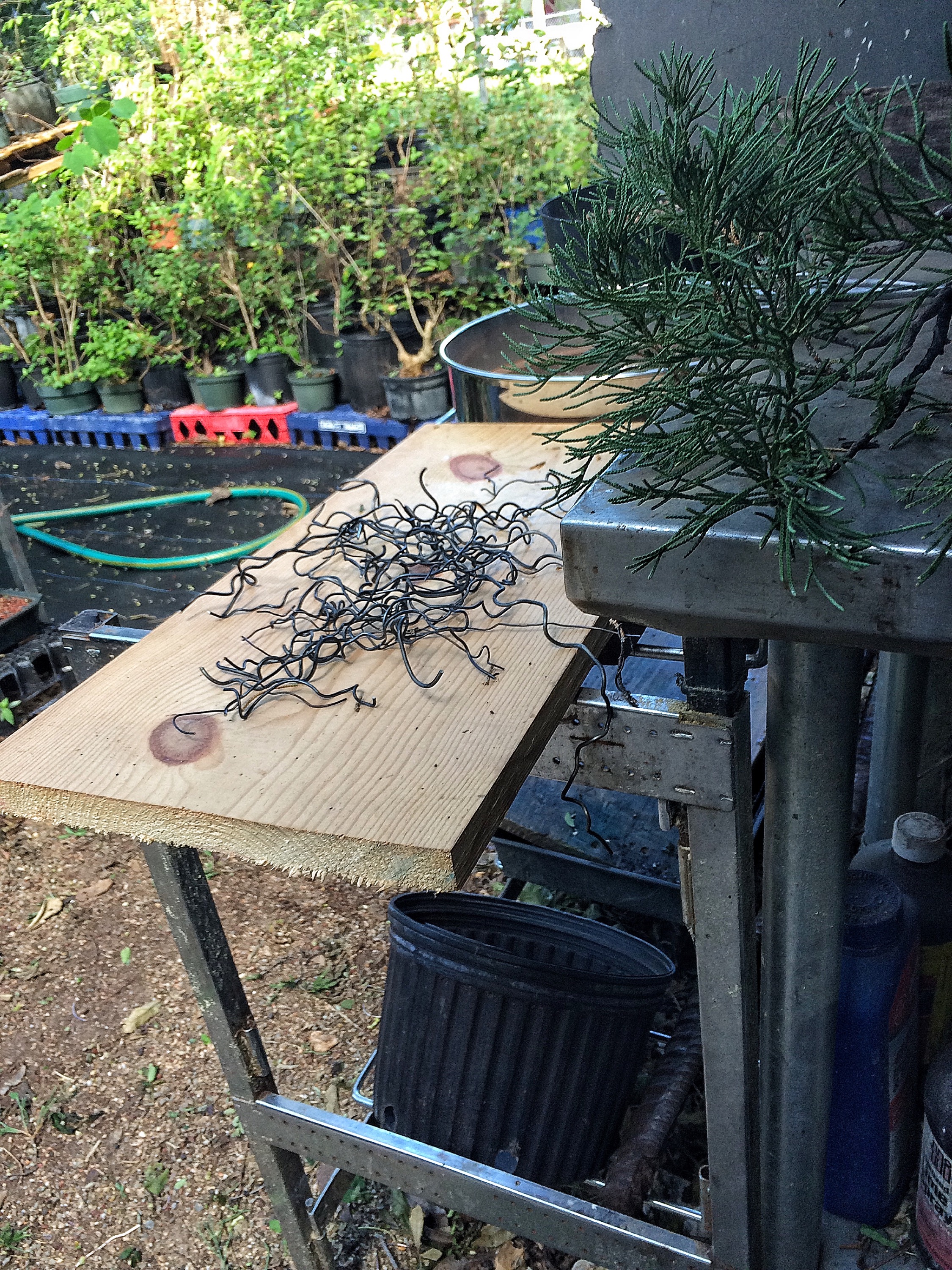 Yep, that’s correct. Copper wire. I figured that I could mend some fences a bit because it seems that a few people were offended by my off the cuff statements about using copper and growing tropical trees. Now, don’t get me wrong, if you’re growing a ficus, which needs rewiring 3-4 times in Florida’s intensive growing season, I still think it’s insane to use it. But on conifers like these junipers, go right ahead. And I had this wire sitting around and I have some junipers that need work. Why not. Let’s see what I can do, right?
