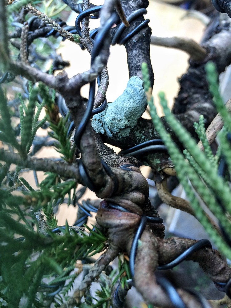 Styling a juniper is a practice in wiring. You don’t tend to chop and hope it grows back. You place foliage pads where they need to go with wire.