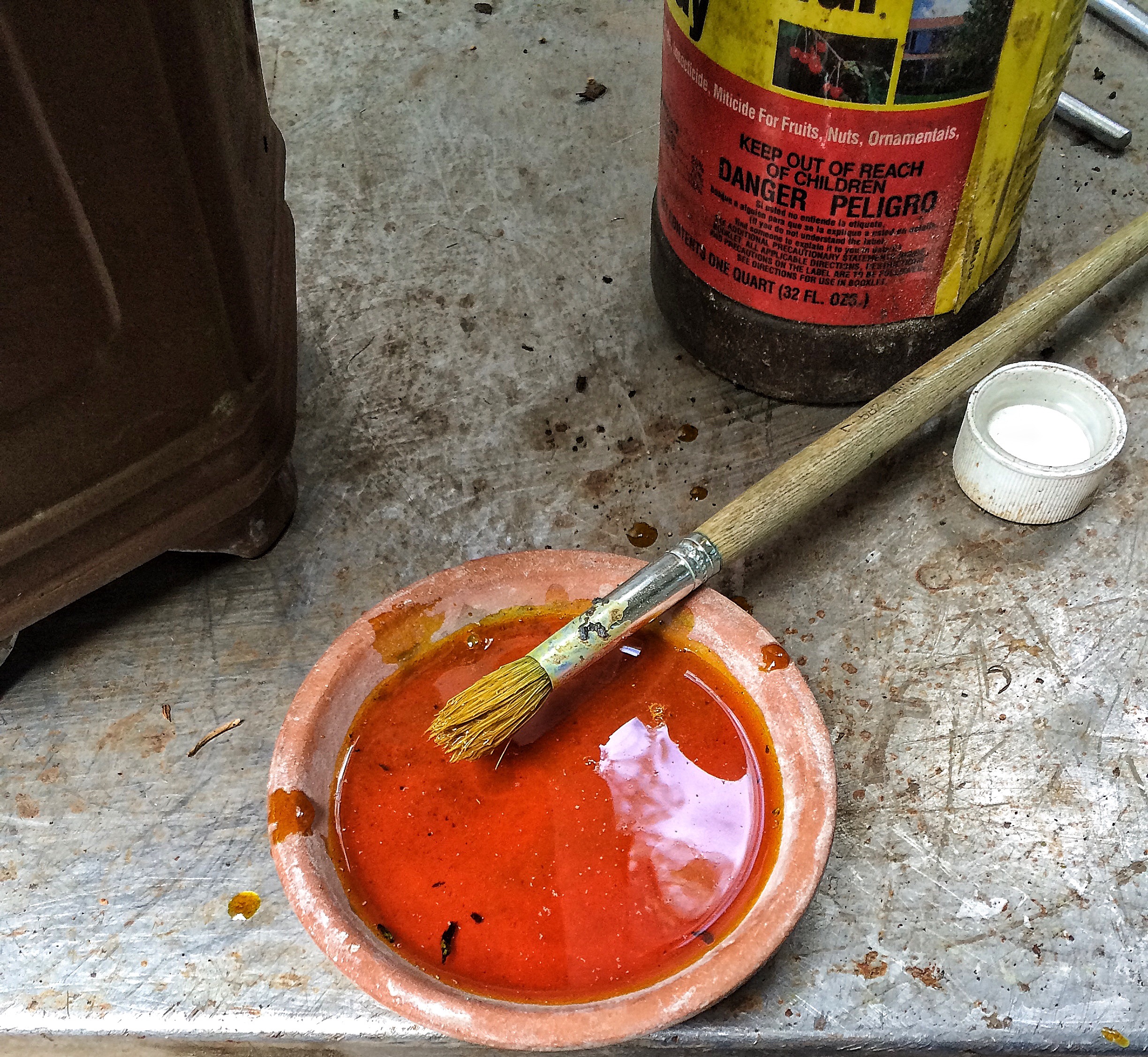 And then apply the lime sulphur. Smelly!