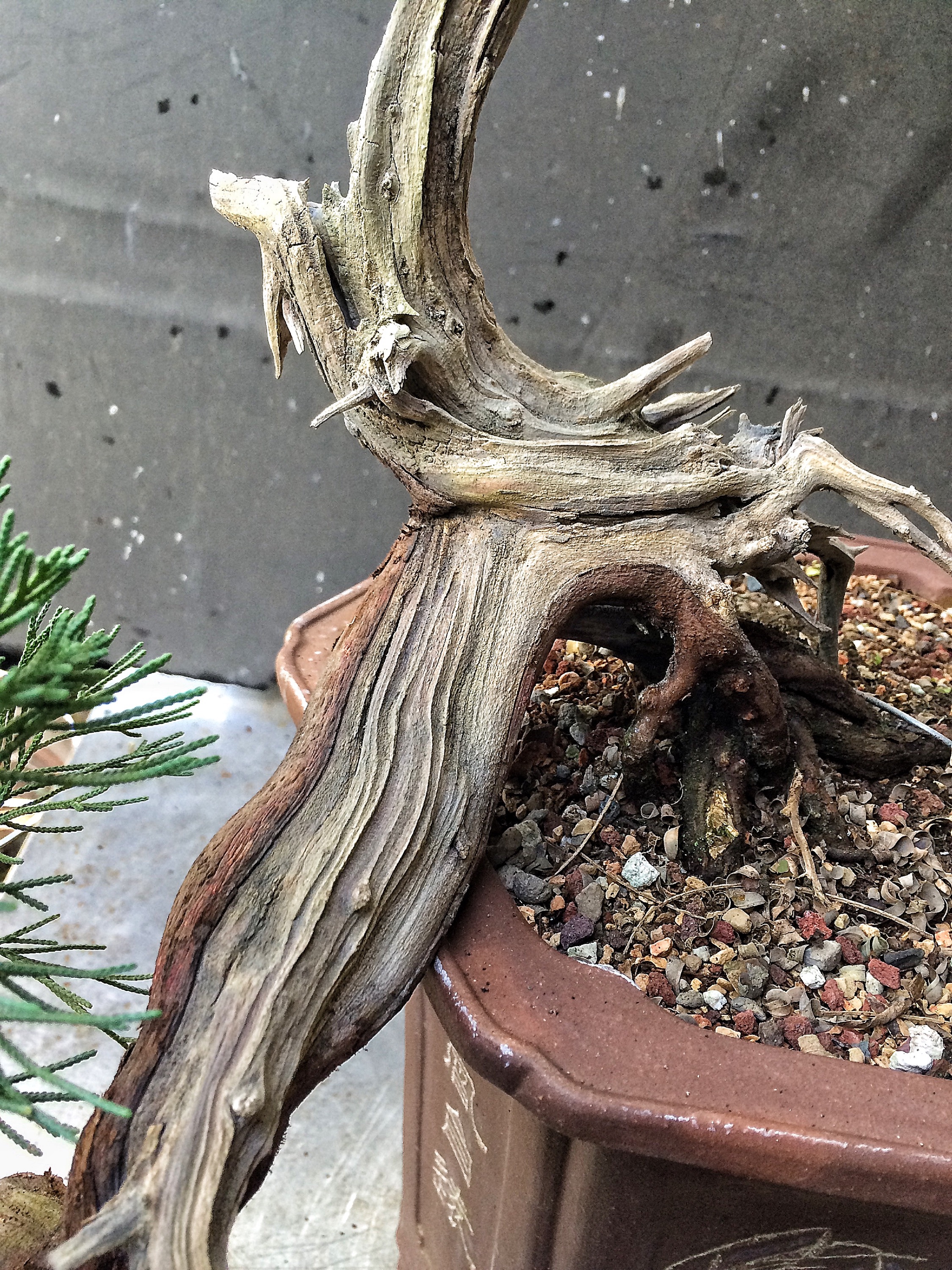 It’s been said that the foliage pads on this type of juniper will never get dense enough to be satisfying, and that’s entirely possible. But the deadwood and movement are awesome, so I won’t be throwing it on the burn pile just yet. I’ve had it really dense at one point and I’m sure I can get it there again. More sun I think.  Or I’ll resort to grafting.