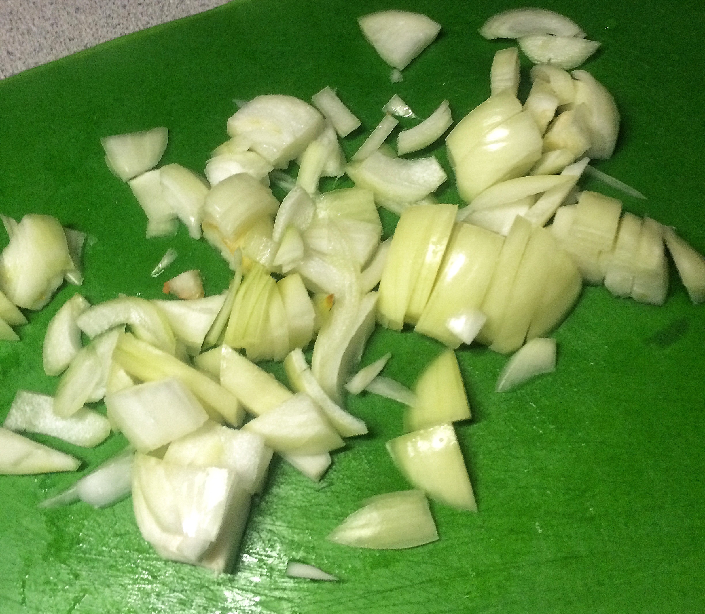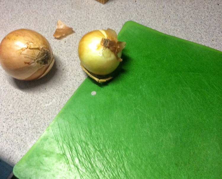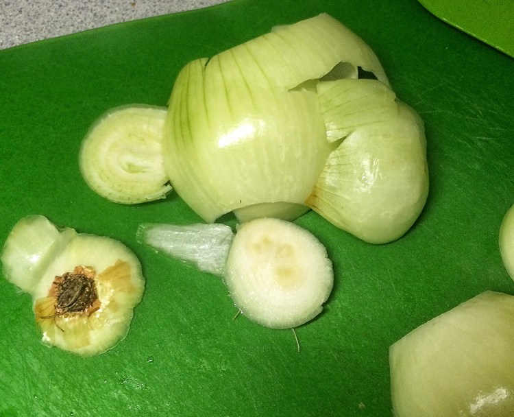 Then rough chop the onion and carrots and put them in the fridge.