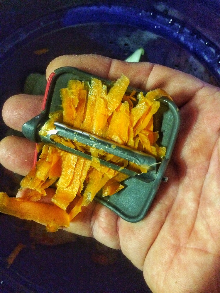 And then peel the carrots directly into the pot.
