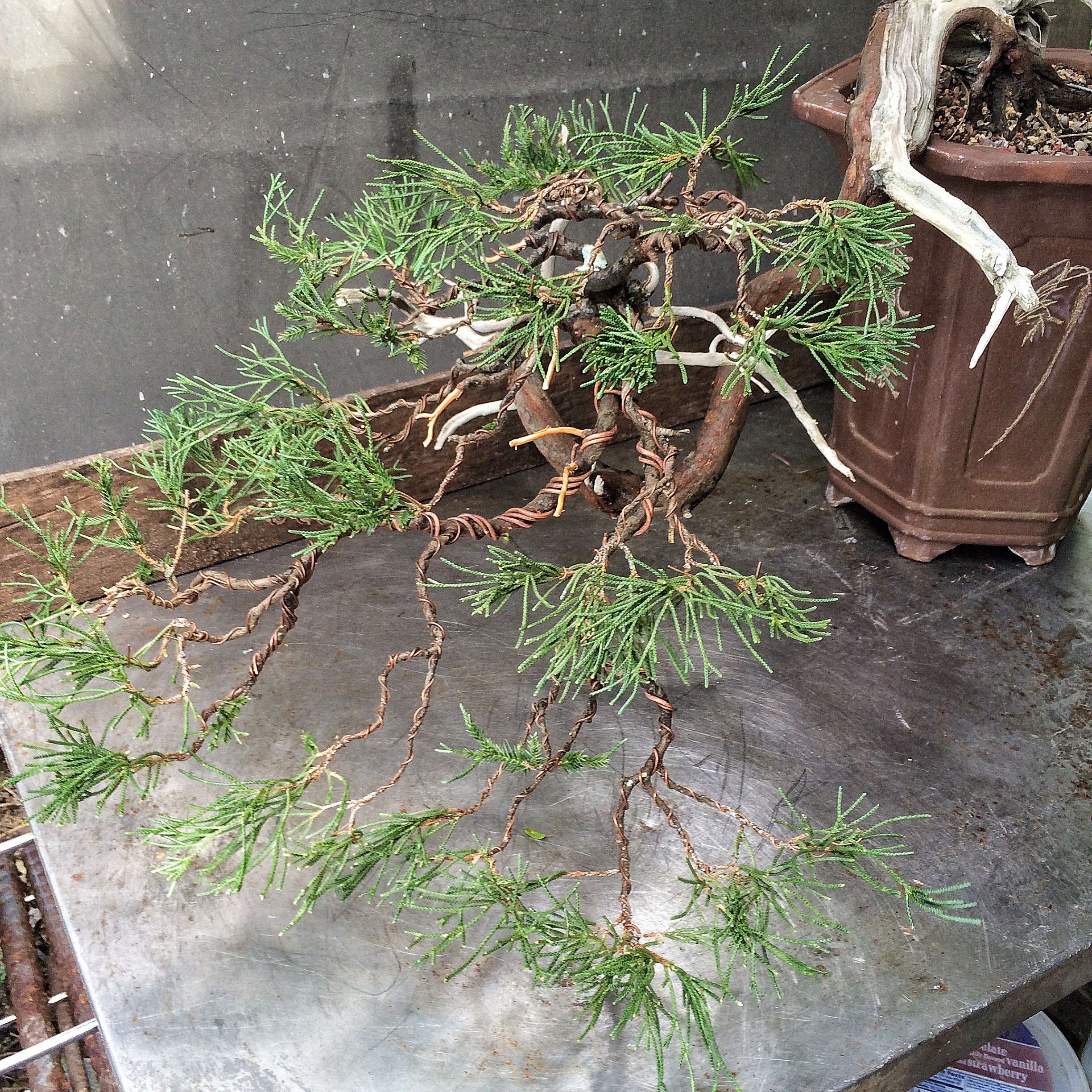 The juniper that Guy gave me. It needs some wire.