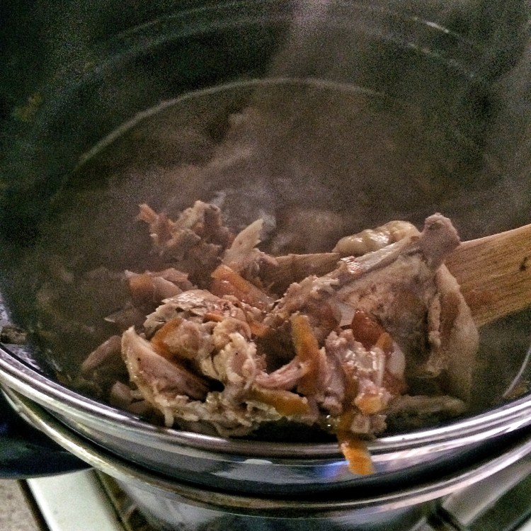 It’s now about one pm. The stock is done; all the bones have let go their bonds of sinew and cartilage, and they’ve given all the flavor they can.