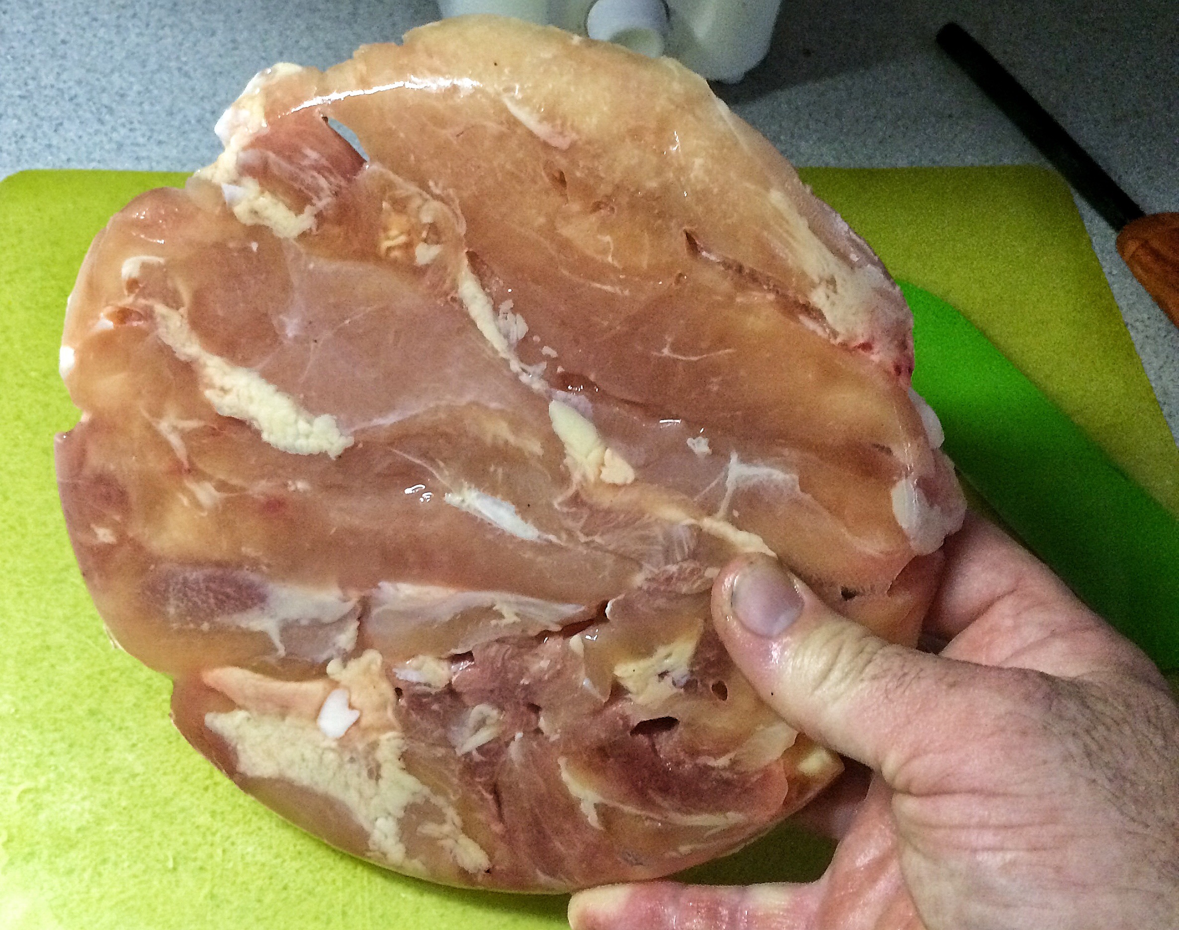 And now, and you thought I forgot about it, it’s time to remove the fat. It’s almost dinner time and I need to get this done.  There are three hungry boys and one hungry goil (ah ga ga ga ga!). Not to mention She-Who-Must-Be-Obeyed.