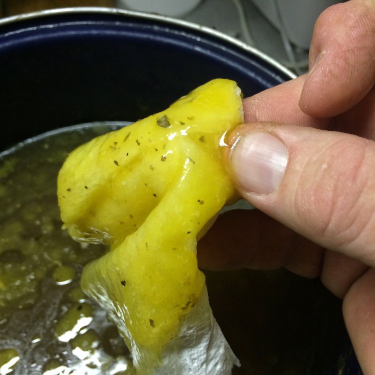 They have sacrificed their all for the success of the soup. Now you’ll see why I’m using that pot.