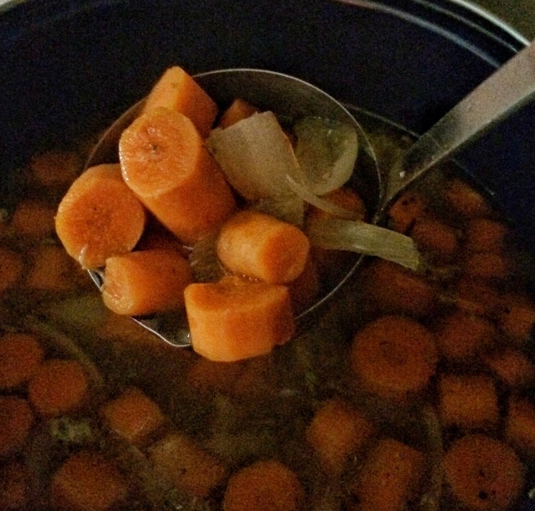 How does it look? I think it’s the best broth I’ve made in a while and the carrots were perfect. Not too mushy, but done. I serve it with buttered bread myself, but you could use crackers if’n you want to.