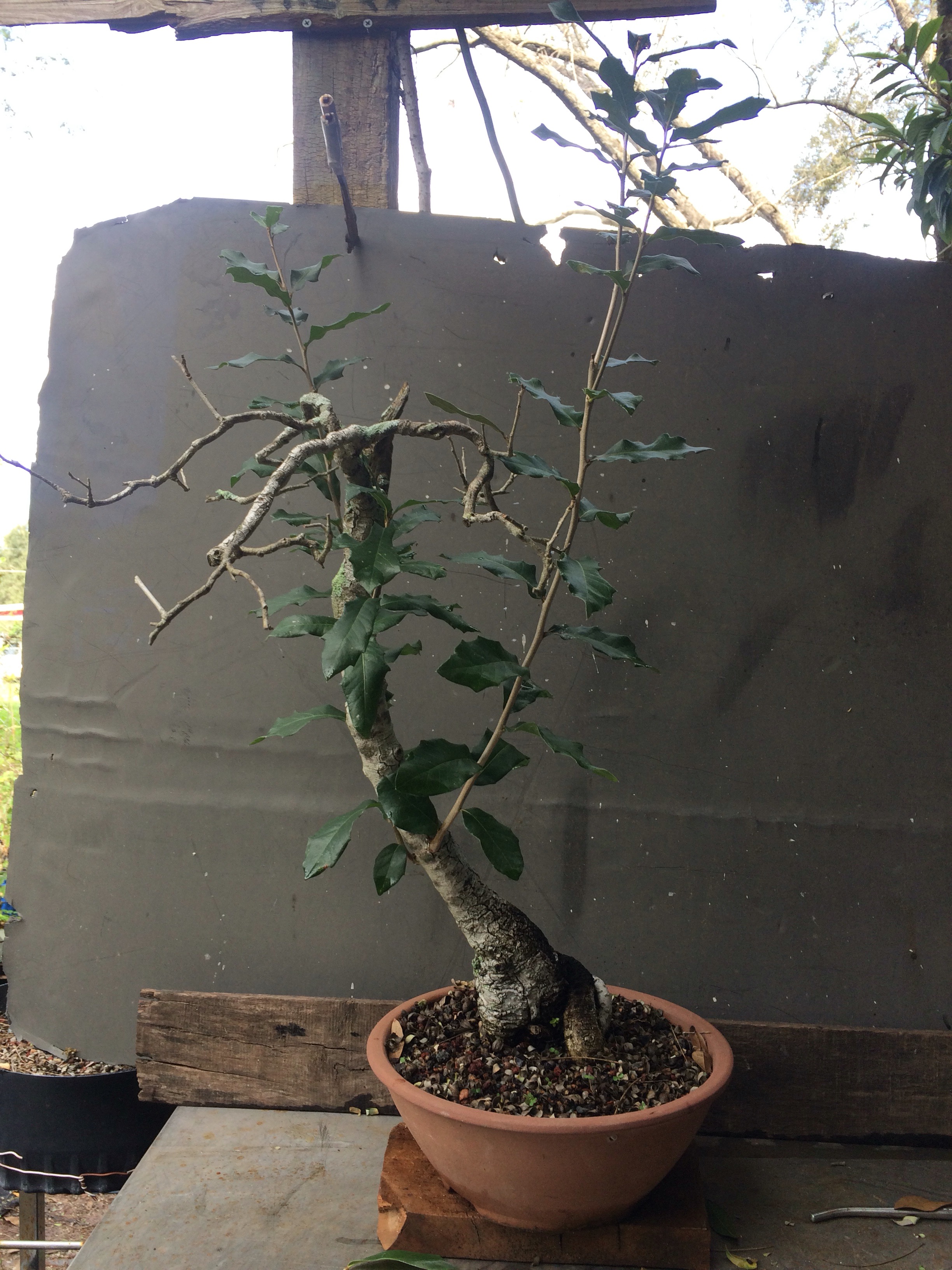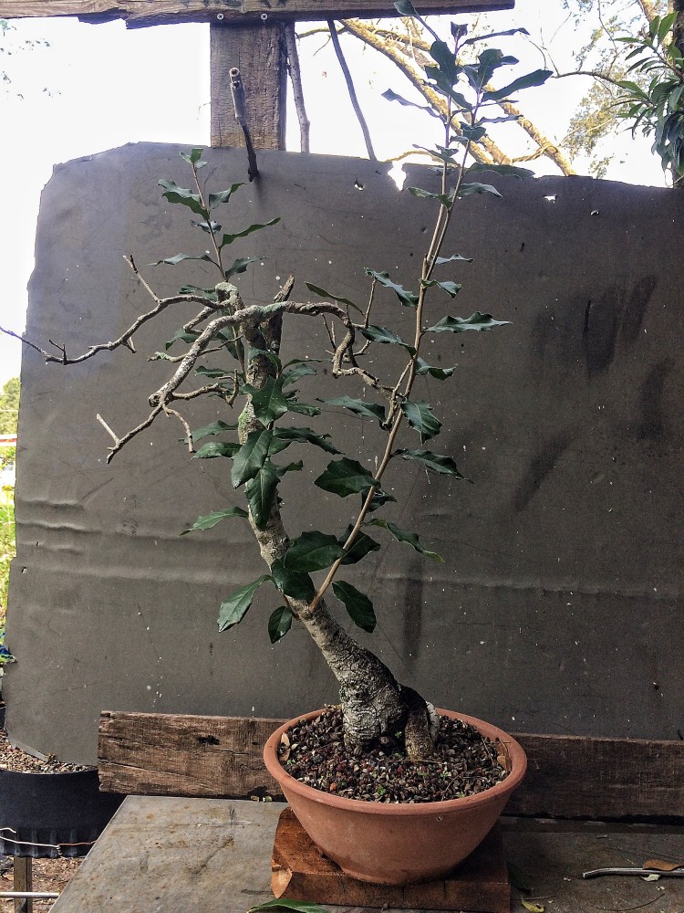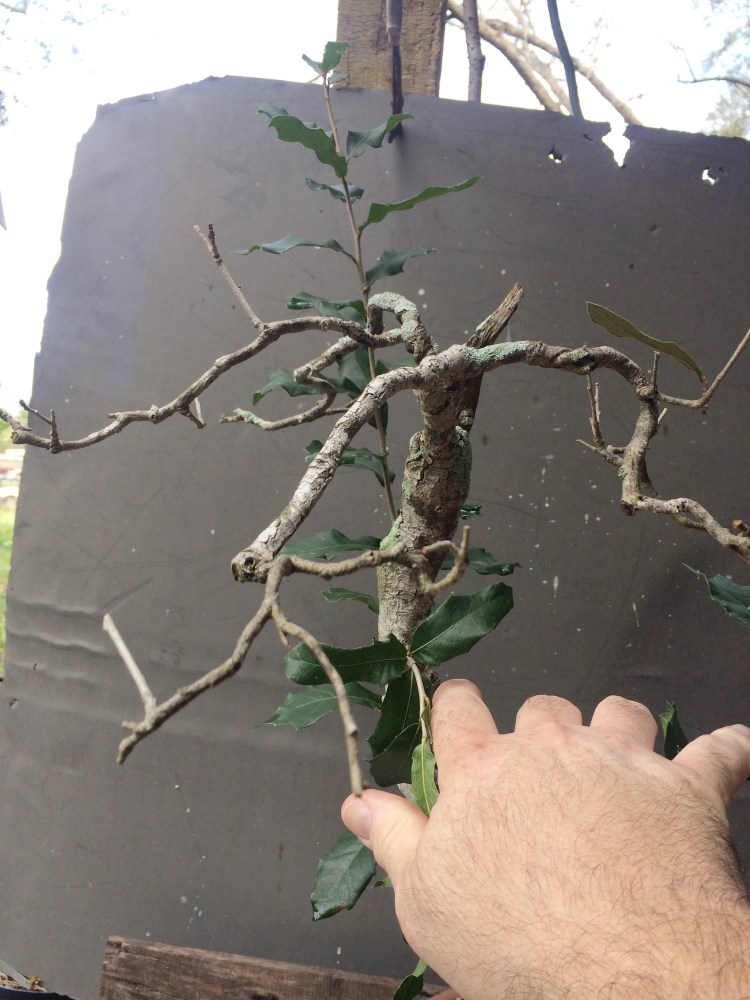 Today’s subjects are a coupla’ live oaks, one collected, one a nursery grown tree.
