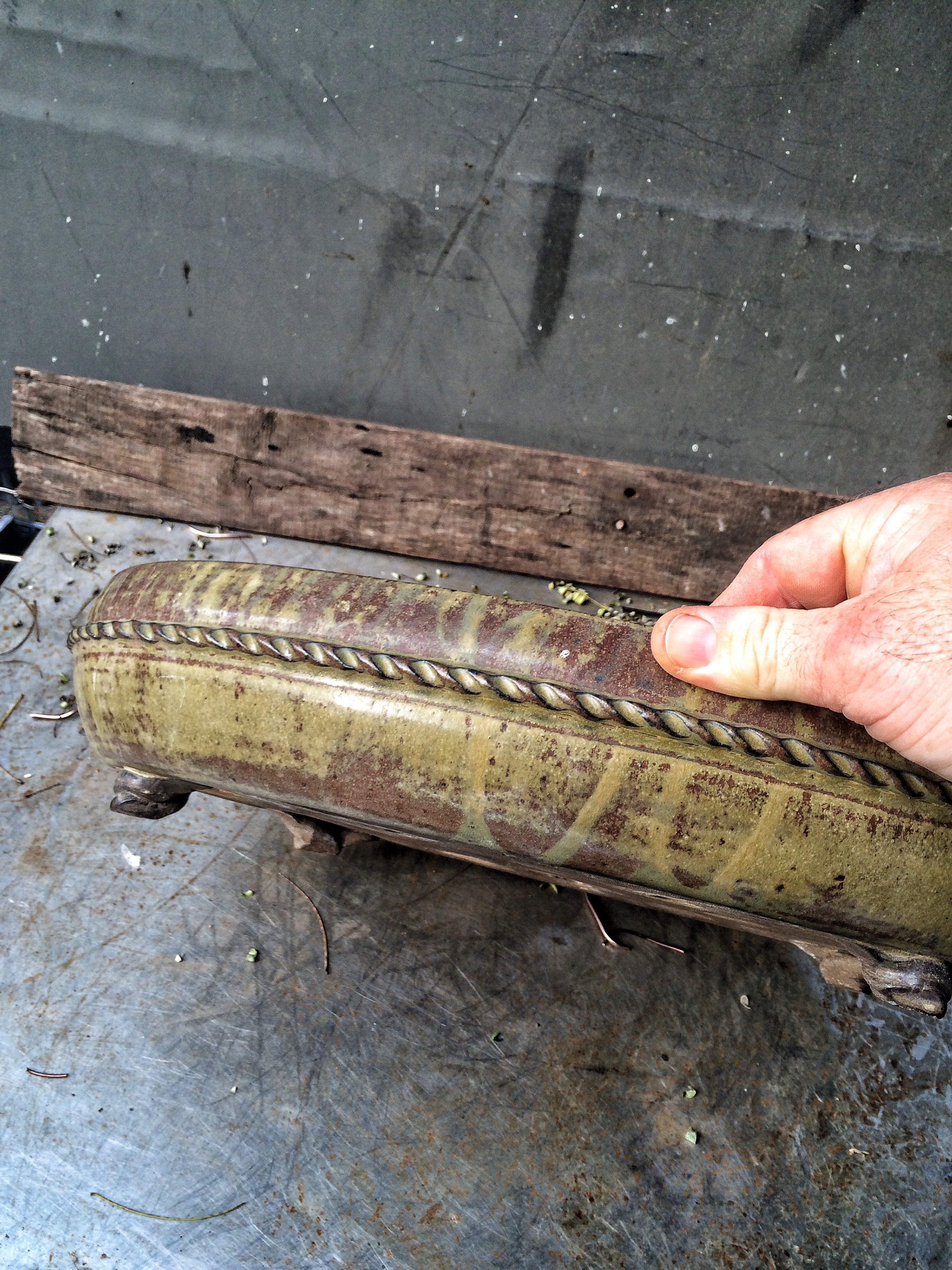 Beautiful. I’m going to embarrass her and say that she is the pre-eminent American bonsai potter that all other bonsai potters look up to. When she goes to a show and sells her wares, she always sells out. No matter how many pots she brings.