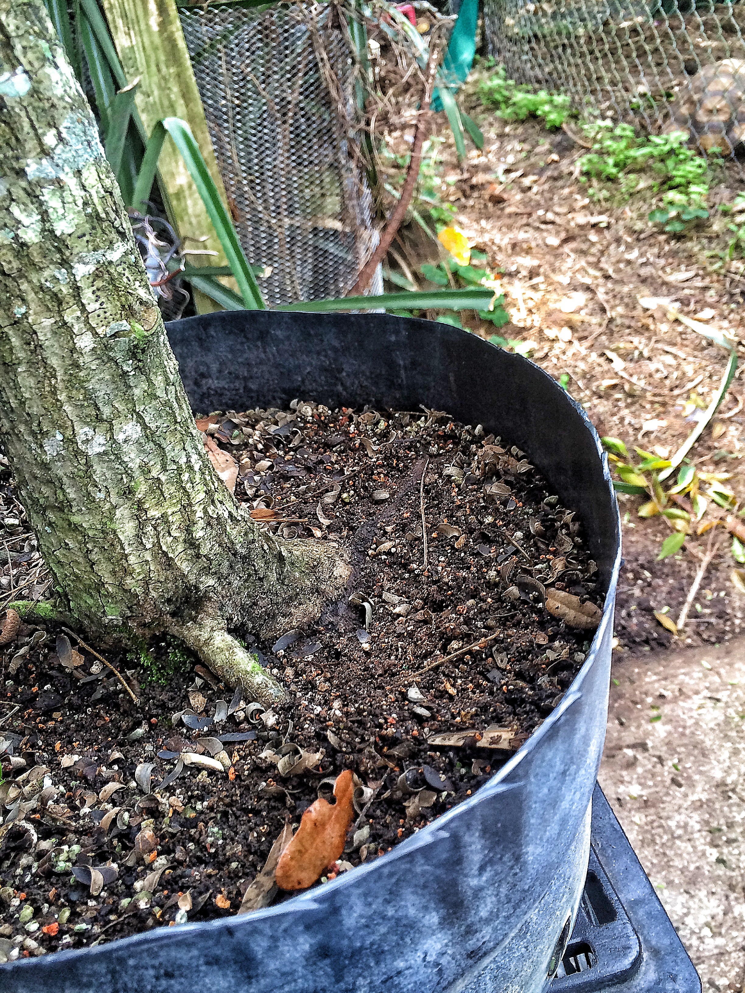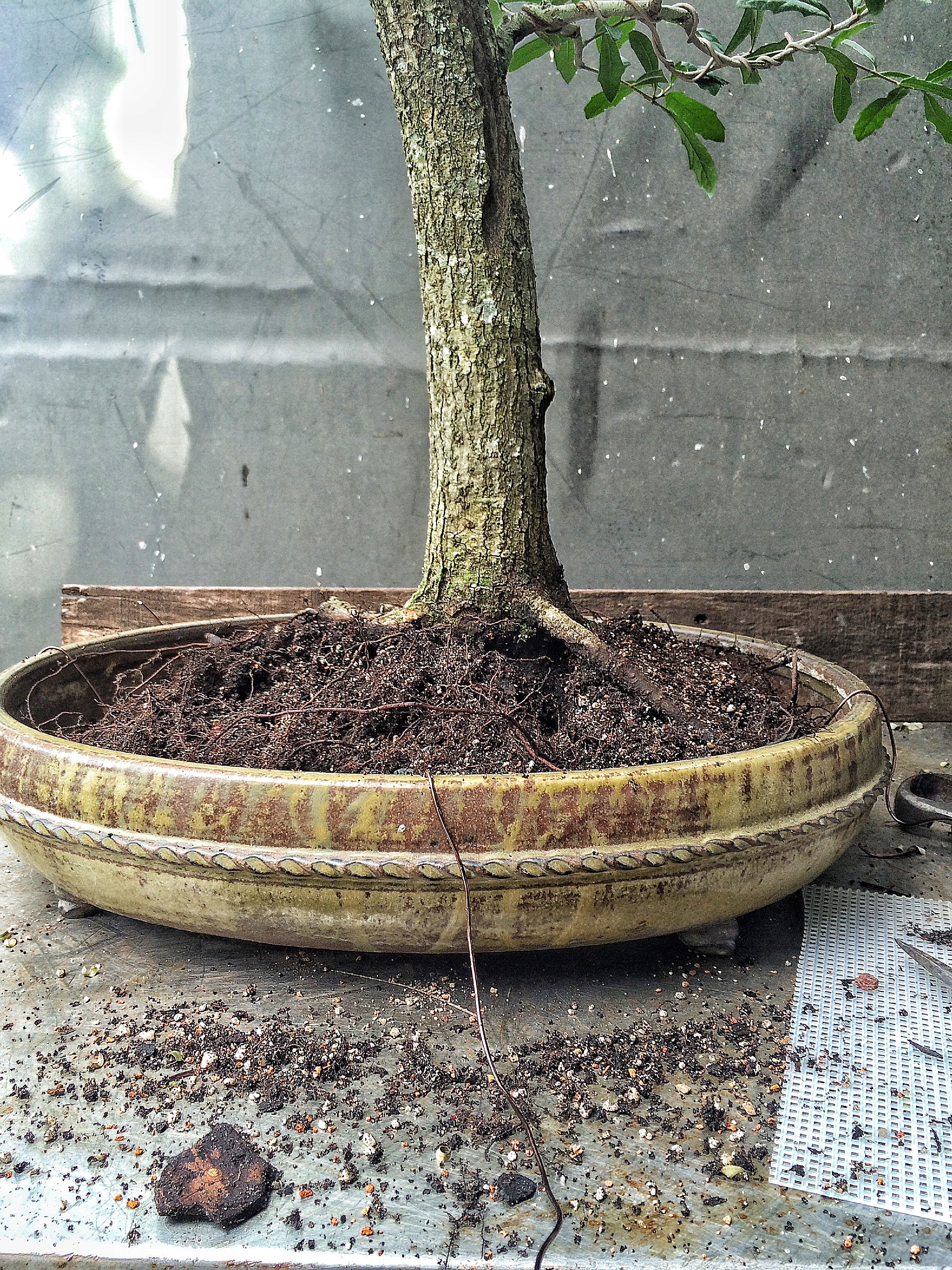 Putting this oak into this pot just now required me to tease out most of the potting soil I use for collected trees (a pine bark based mix cut 1/2 with perlite or used bonsai soil. Very well draining). And it fits like a glove.