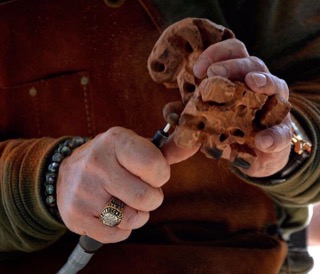 The above pic is off his Facebook feed. The wood we used was mahogany. It’s a good carving wood in that it holds detail well but it is also brittle along the grain so you have to be careful making too skinny details horizontally (the grain is running up and down on these blanks).