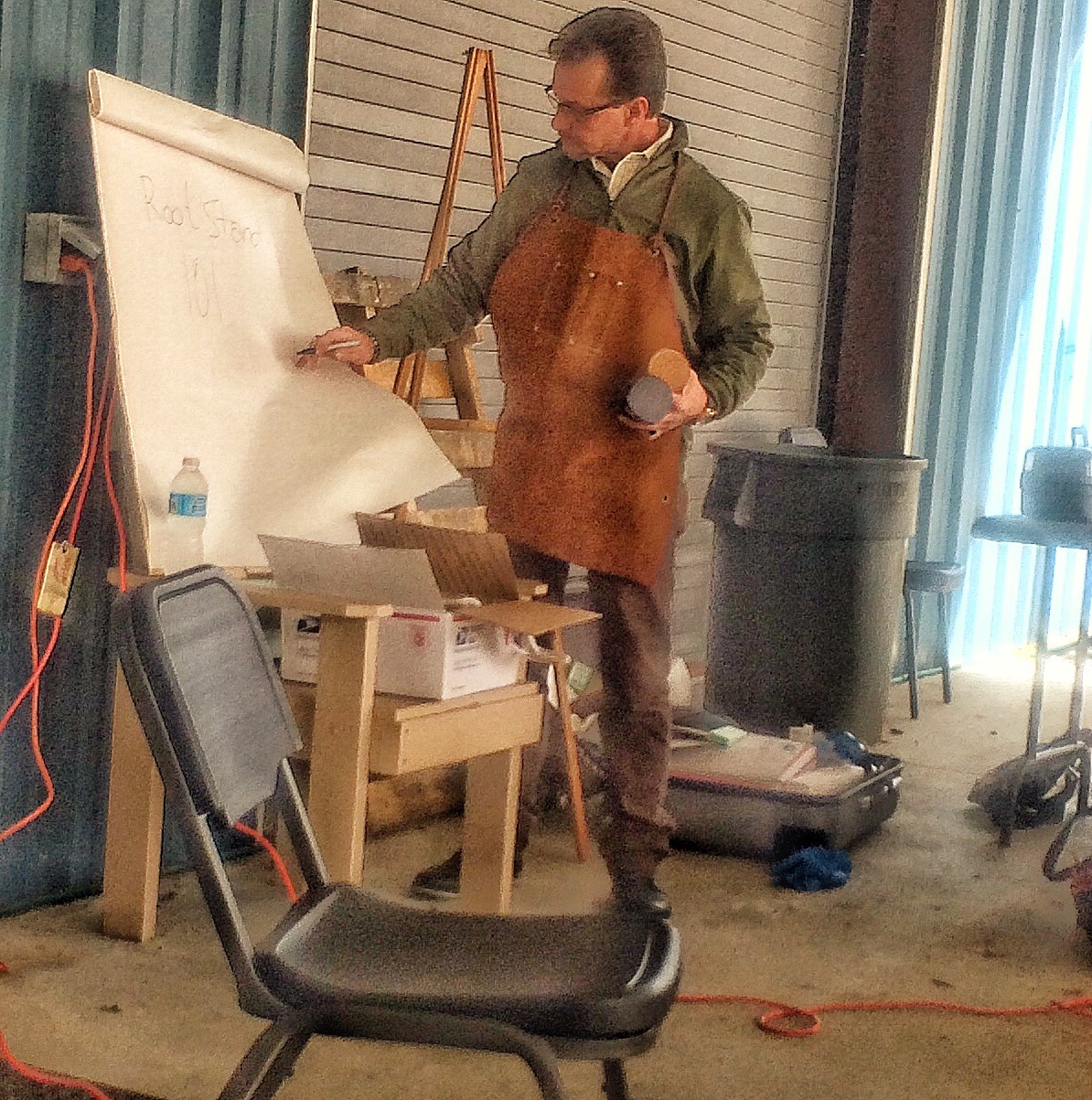 Again, going back to January (before my latest surgery), I had the pleasure and privilege of taking a root stand carving workshop with Sean Smith. Sean is probably the pre-eminent Japanese woodcraft artist active in the bonsai community in the U.S. today. You know, I once knew a man with a wooden leg named Smith. I never asked him the name of his other leg. But I bet it was Sean who carved the wooden one.