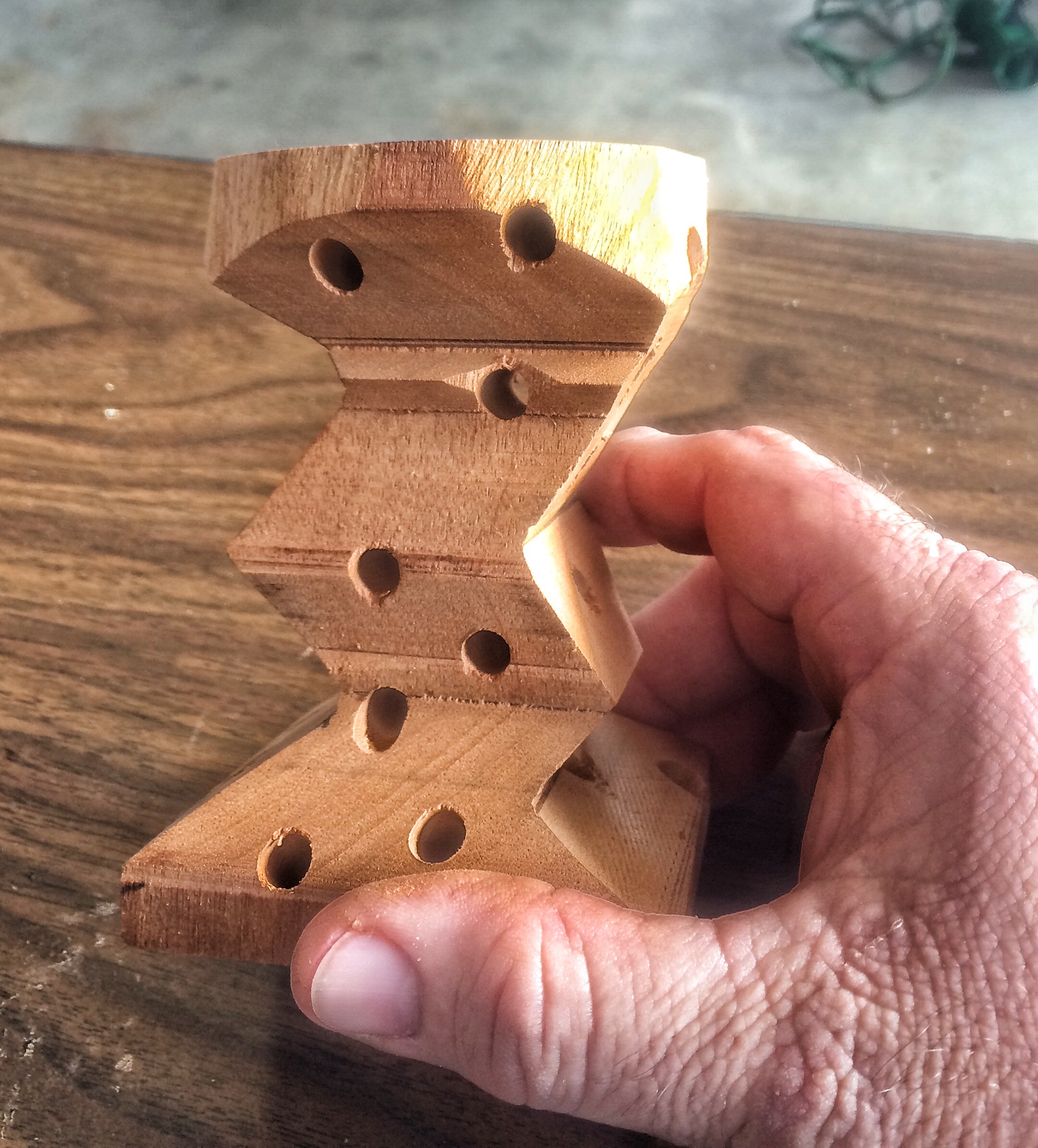 The above pic is off his Facebook feed. The wood we used was mahogany. It’s a good carving wood in that it holds detail well but it is also brittle along the grain so you have to be careful making too skinny details horizontally (the grain is running up and down on these blanks).