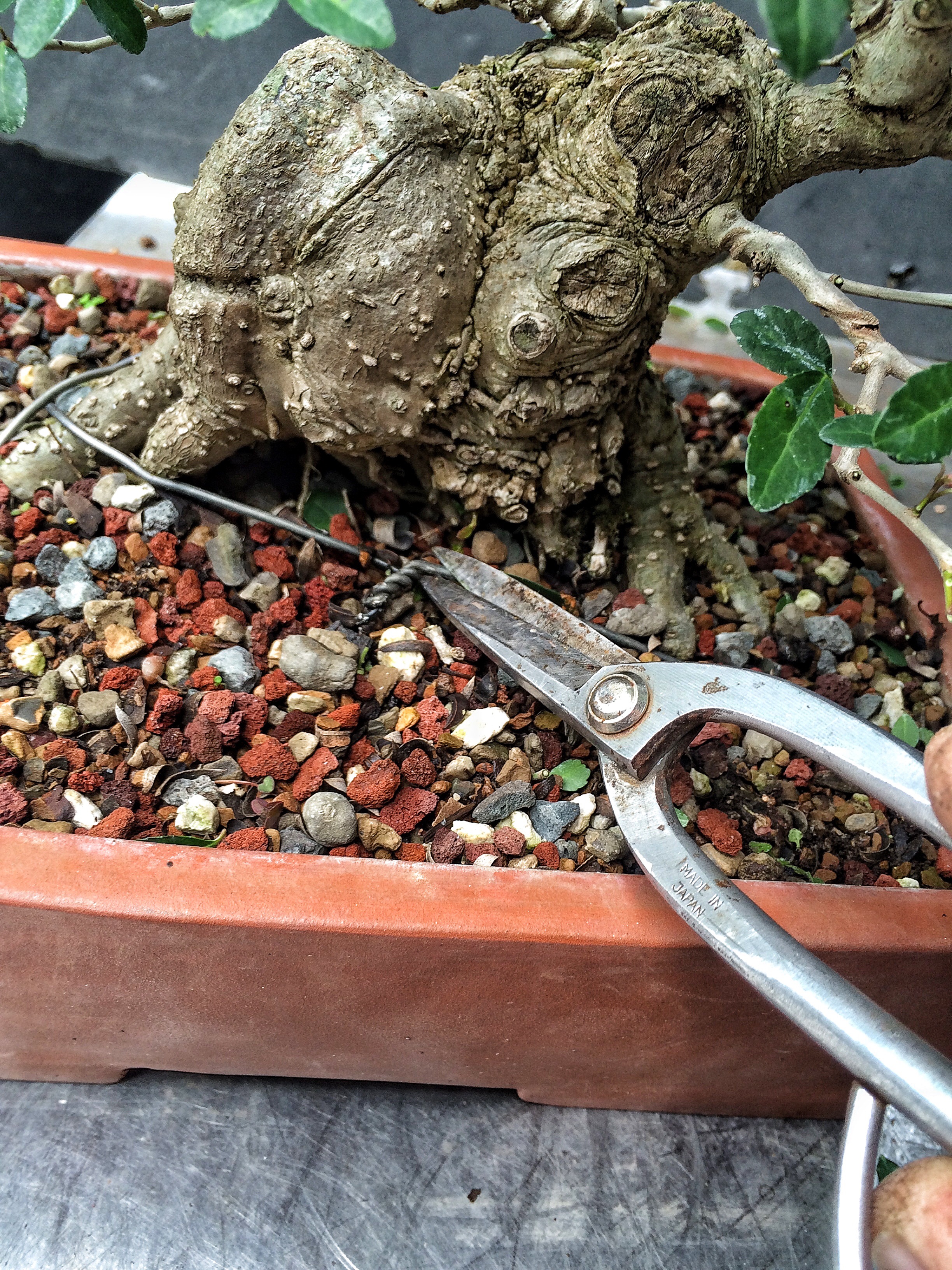 Very important for our ilex. Before I choose the pot, let’s get the tree ready and then look at it in sitting in the pots.