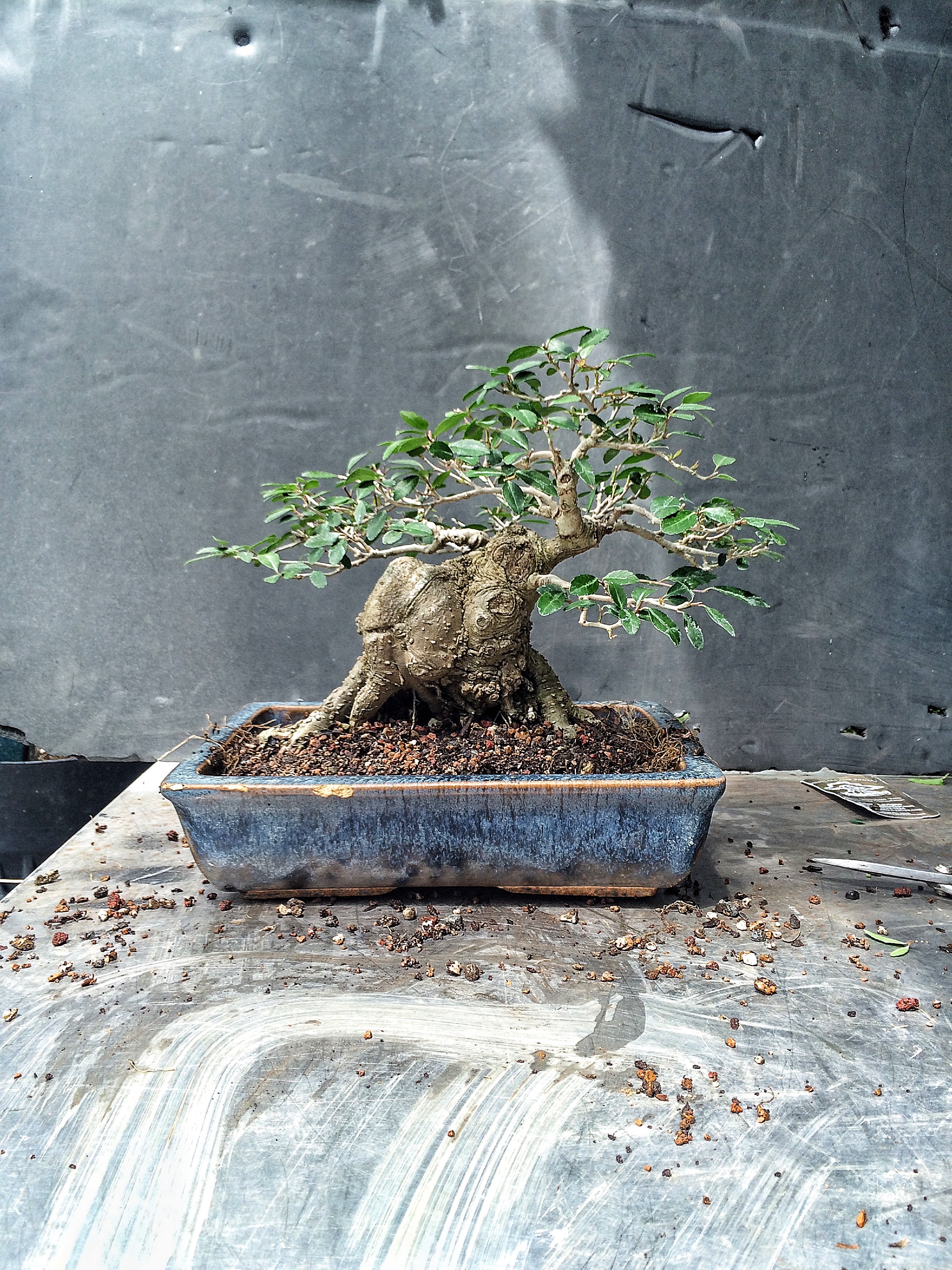When I potted the tree two years ago, I did say it needed a smaller and shallower pot. Now is the time.
