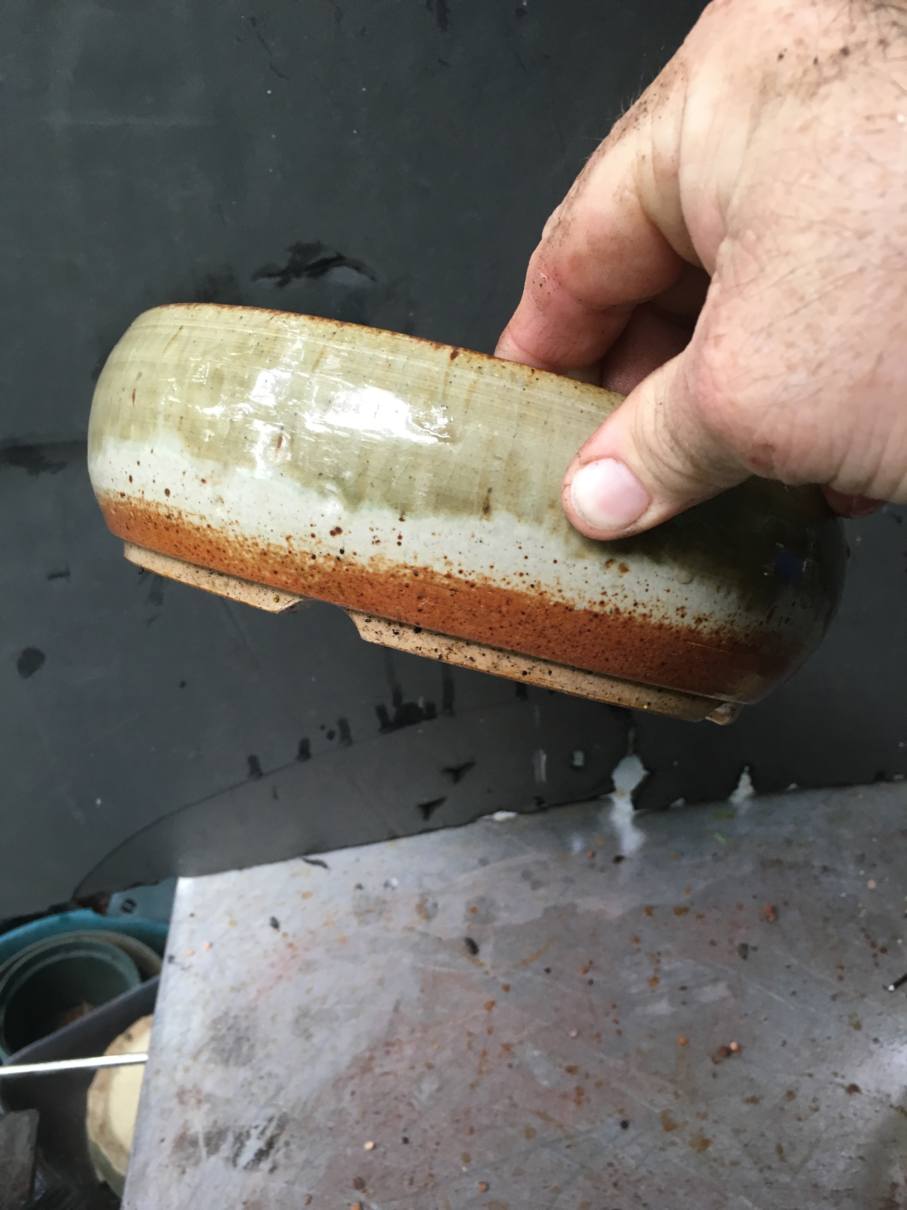 He is one of the few American potters that can re-create works for commission. If you see one he’s made but the current owner is too stingy to part with it, Paul has the notes with the clay body, the kiln temp, and the glaze compounds he’s used, and can make another one. A true artist. I’m switching out the trees and pots not because I don’t like them but because my vision has changed. I’m getting beyond the traditional pottery styles we’ve all been using (I’ve been influenced some by Mike Hagedorn and Rob Kempinski a little).