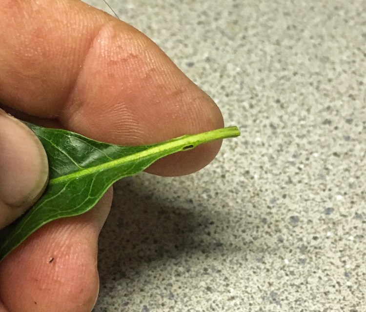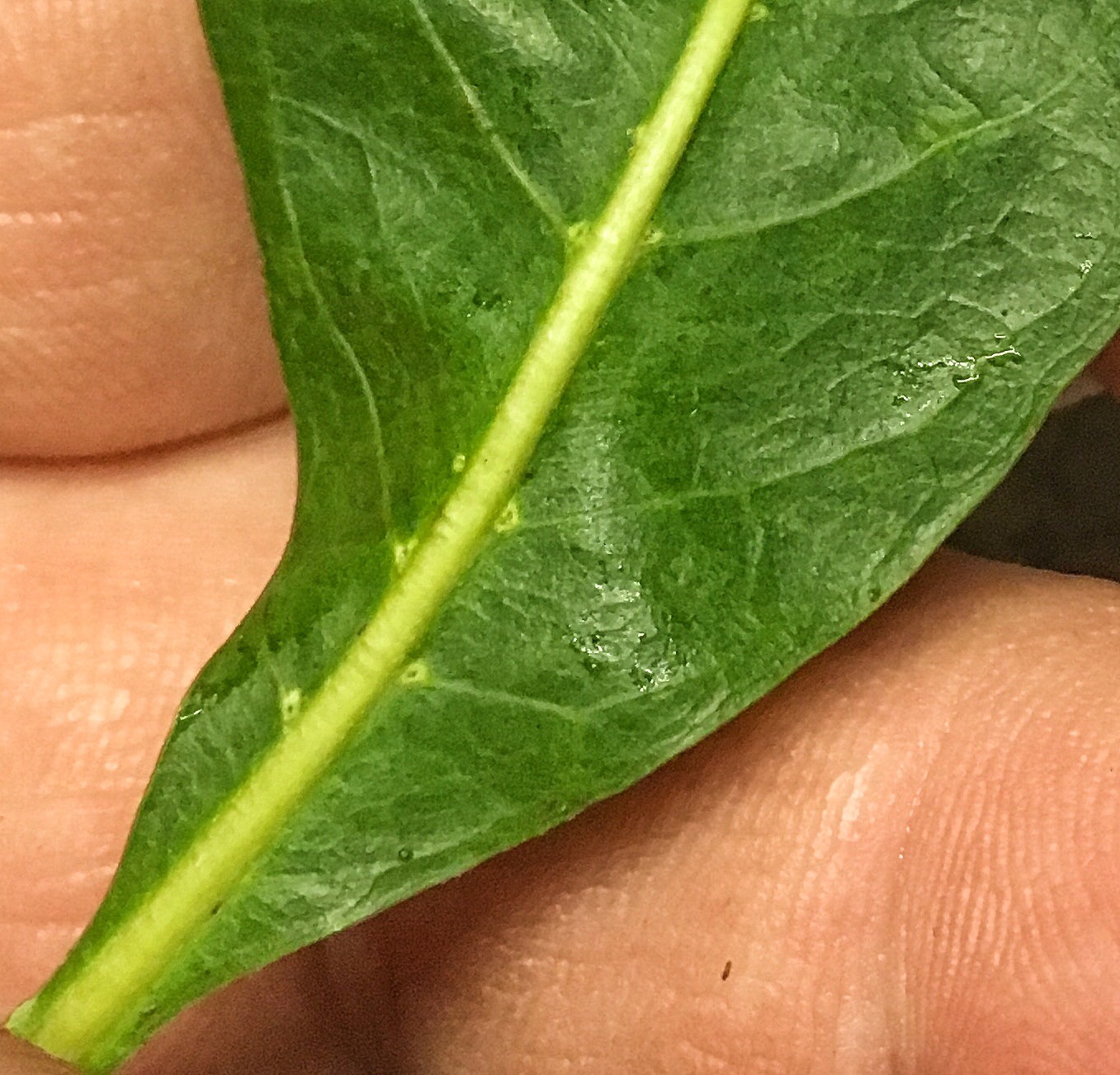 I’ve just recently noticed a similar gland on the bottom of the leaf along the center of the middle vein.