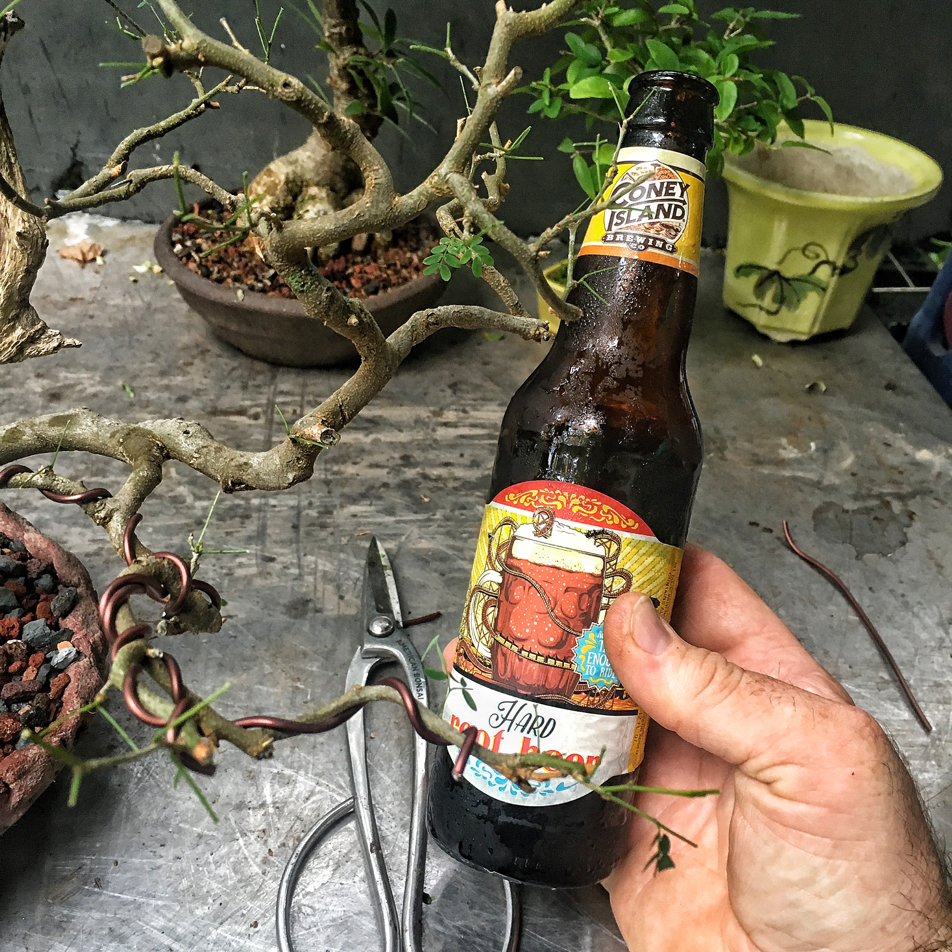 ……well, after a quick beer….hard root beer after a hard root prune. How appropriate….