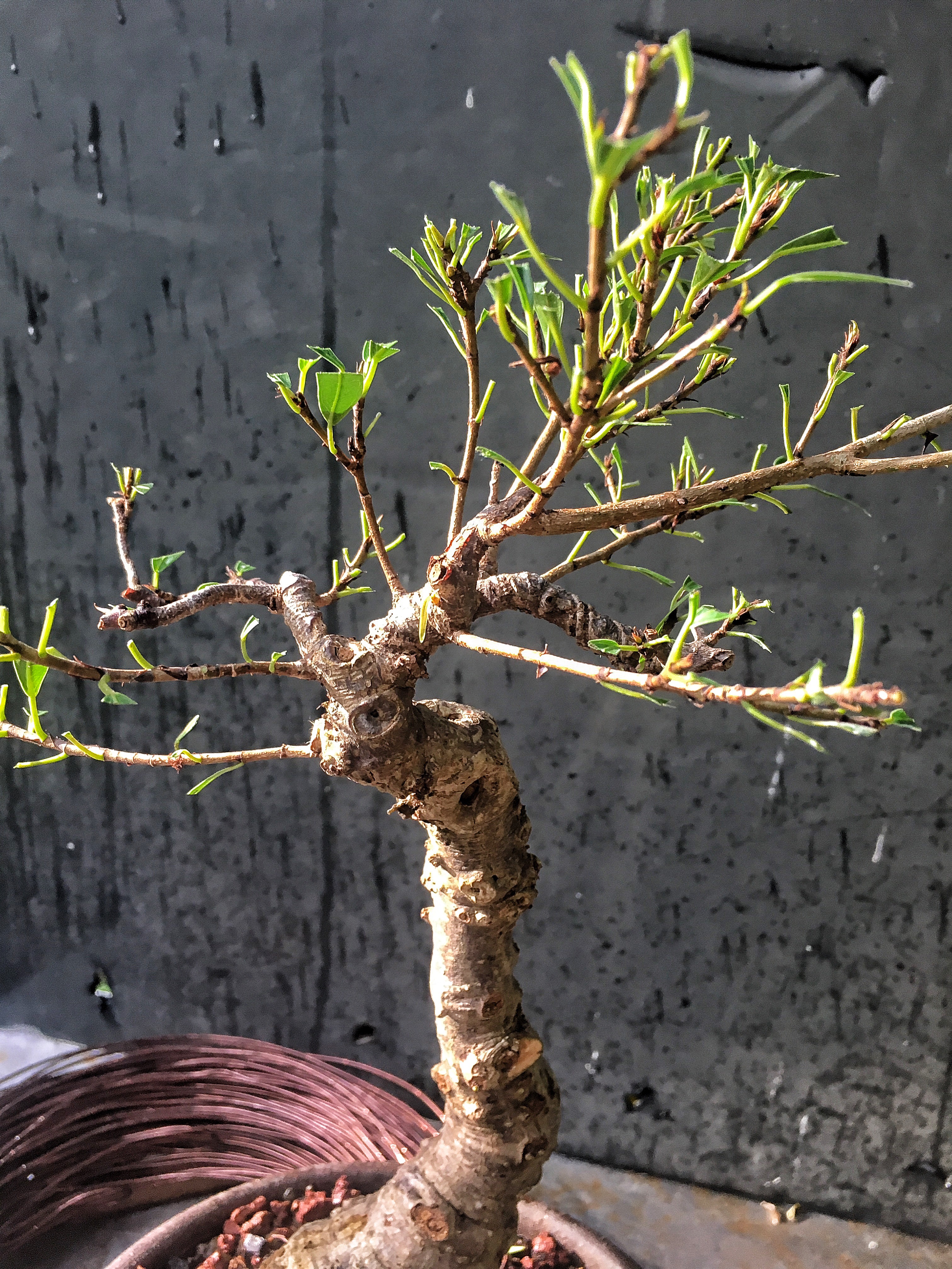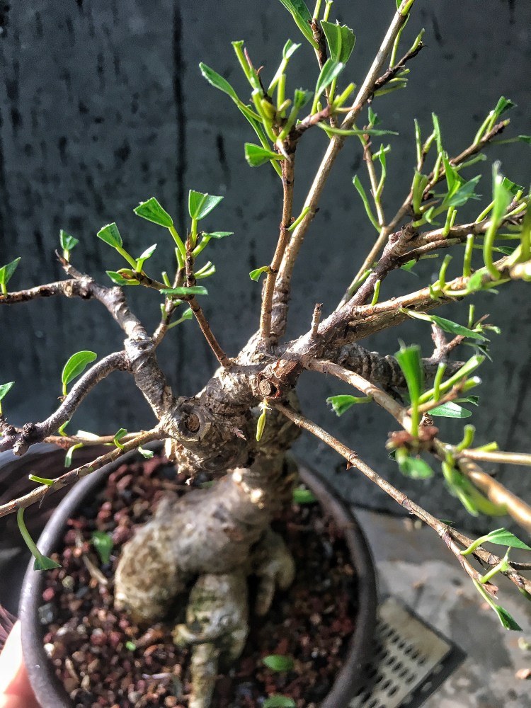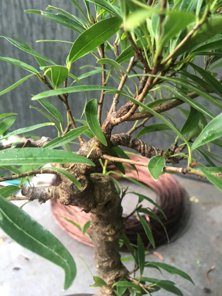 This was a willow leaf I almost killed last year at the same time as my daughters tree. I was testing a theory this year, whether it was the repot or the tree going into the full sun that damaged the branches. So I didn’t repot it, but it went into the full sun. And bam!