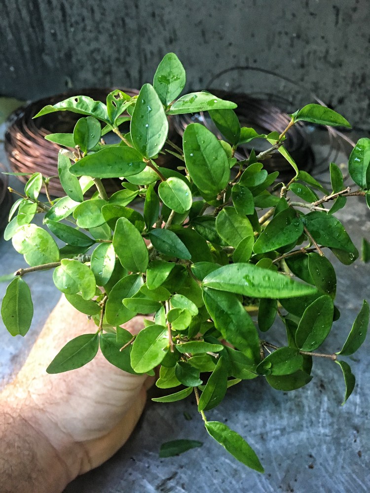 It’s so cute! I can hardly wait for flowers! It gets little white and very fragrant flowers that hang down. They call it “water jasmine” because the only way to see the bloom is in the reflection in a pool of water.