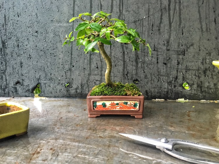 I got this cute little guy from the Hukyu Auction in Clearwater a few weeks ago. It’s my first real mame, which means a miniature bonsai under a certain size (which varies depending on who’s book you read, but about 4″ or so)