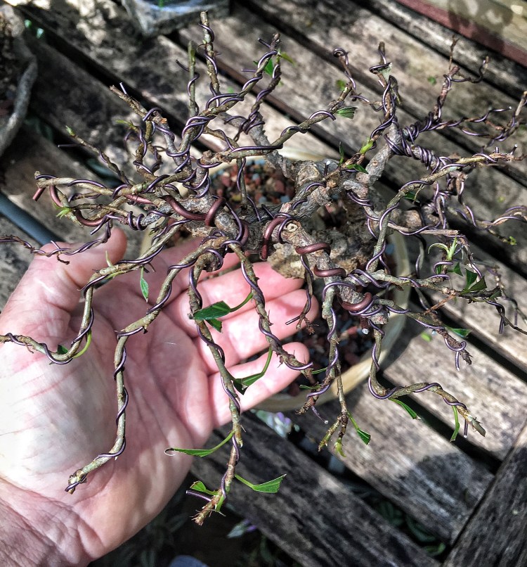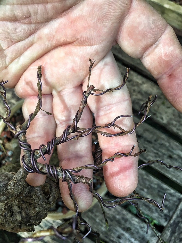 So there won’t be a repot but I’ll trim and wire it. I’m learning, really, I am. I’ll still defoliate it.