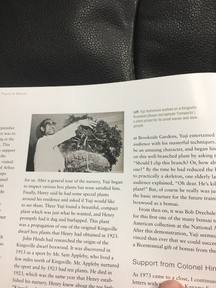 The next surprise story for me was a history of the famous “kingsville” boxwood. I’d wondered where the name came from, who discovered it, all that. Well, it was a sport from a buxus microphylla found by a man named Sam Appleby in 1913. To give credit to how slow it grows, by 1923, Sam had about ten plants from the original sport that were procured, after Sam’s death (it could be said that he died waiting for the boxwoods to grow….) by a Mr. Henry Hohman from, wait for it, Kingsville, Maryland. He named his nursery, aptly, Kingsville Nursery. Henry didn’t really see the kingsville box woods as a commercial tree, being how slow they grow and the brittleness of their stems, he just truly had a passion for them. And he cultivated them and allowed them to be given to others with the same passion for them he had. In fact, the first tree that Yuji Yoshimira used for a demo at for National Arboterum, was on one of Mr. Hohman’s kingsvilles.