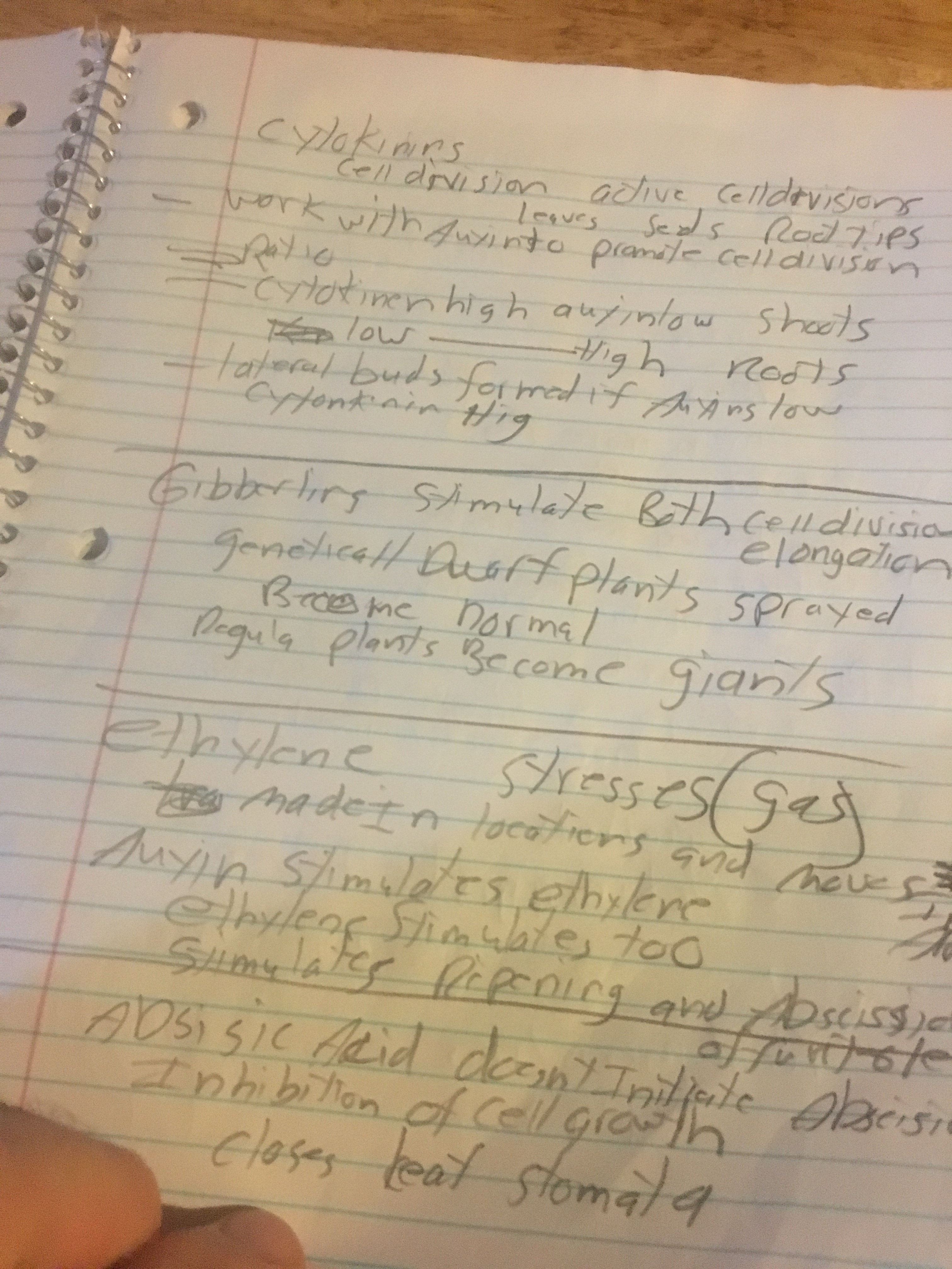 A quick aside, when we are talking plant hormones, we are talking minute amounts. In example, if we use two different auxins mixed together, and spray a forest or jungle in massive amounts, we don’t get a monster super tall tree jungle, we call that mixture Agent Orange and we get a wasteland. It’s actually toxic to plants in high concentrations (and birds and mammal and soldiers, women and children) even though it’s made by plants. Next!