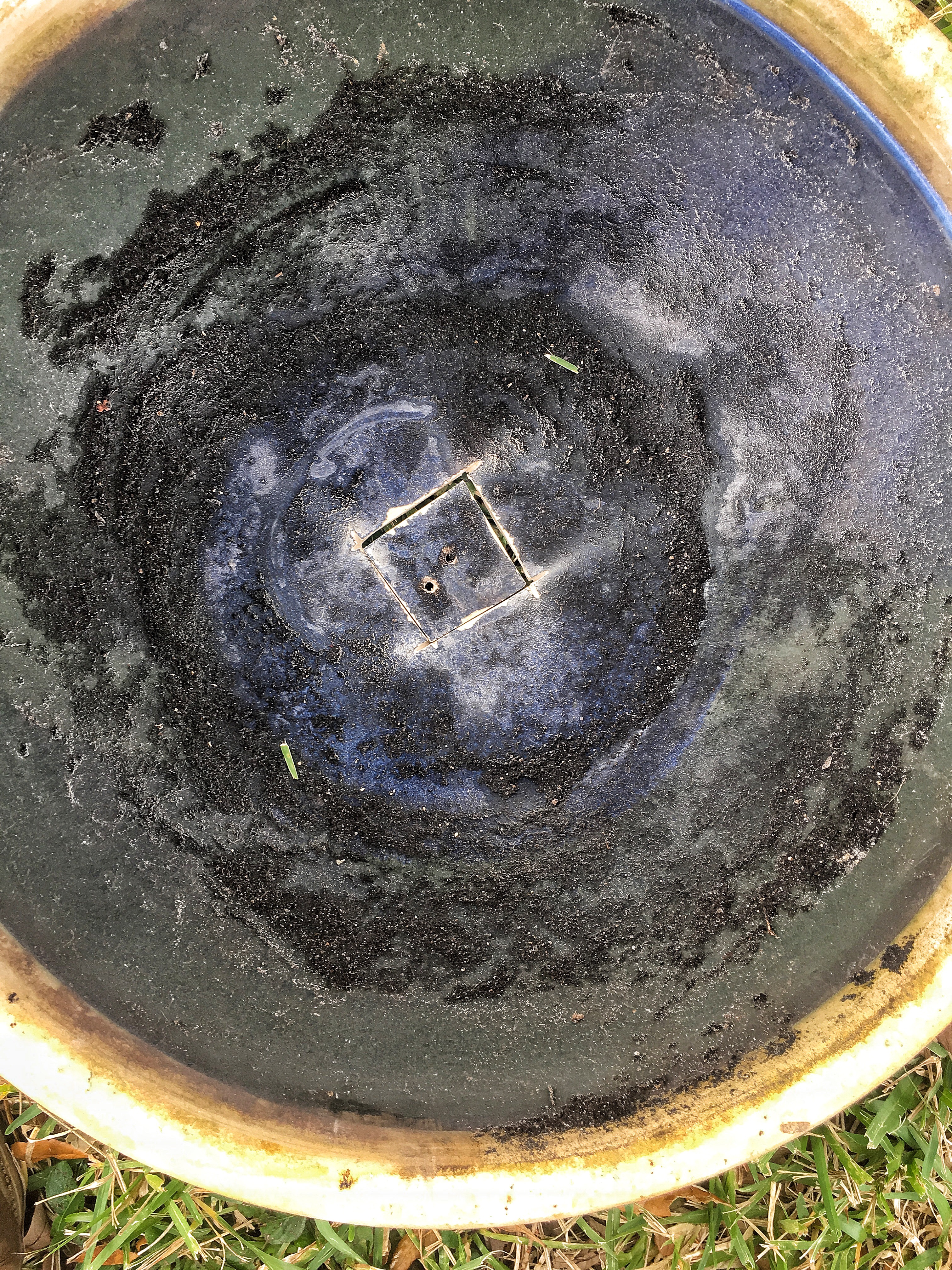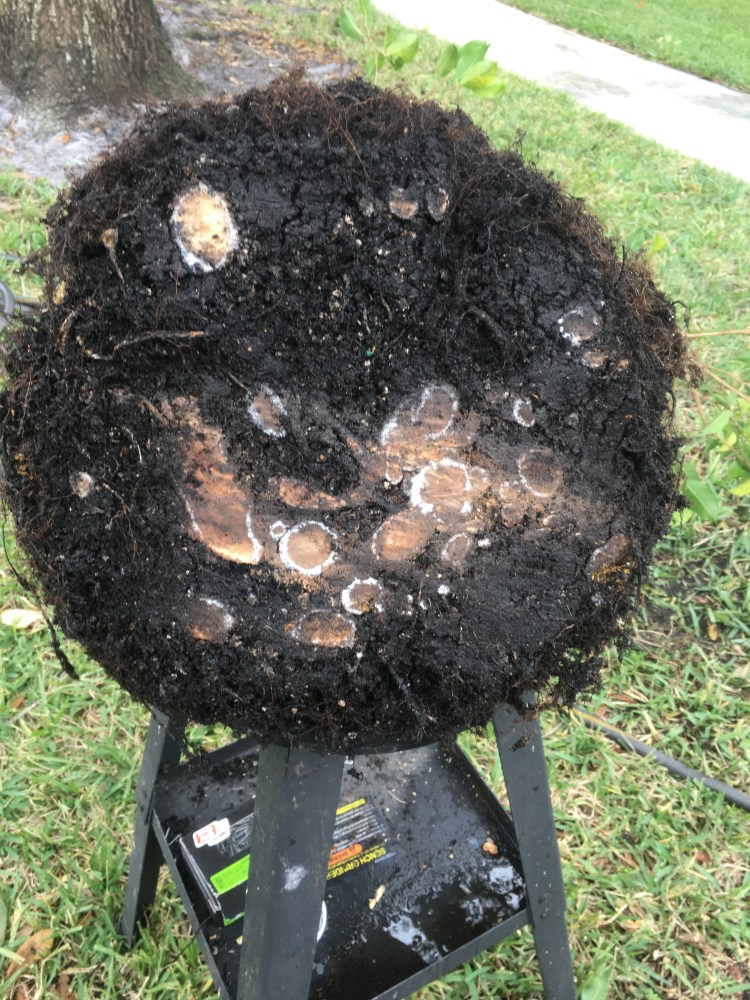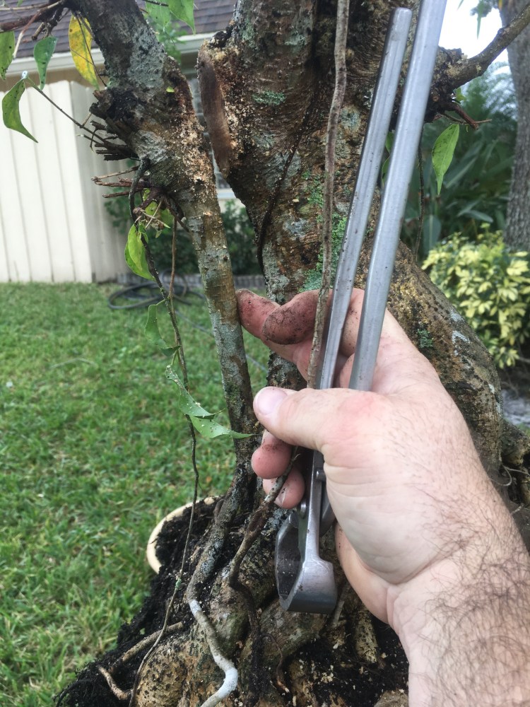 I took about an inch off the bottom and hosed off the theoretical soil. Added new bonsai soil, fertilizer and the systemic insecticide.