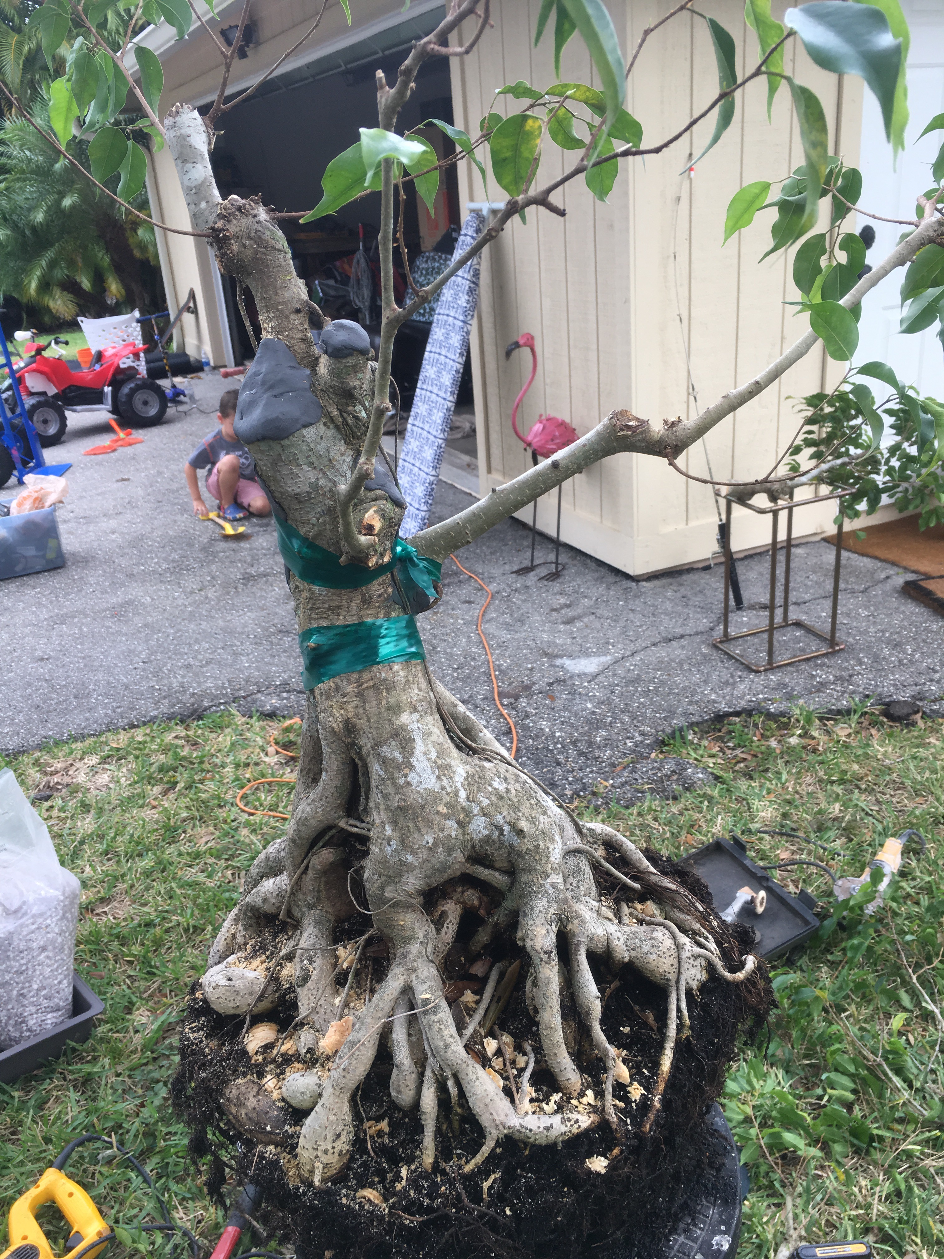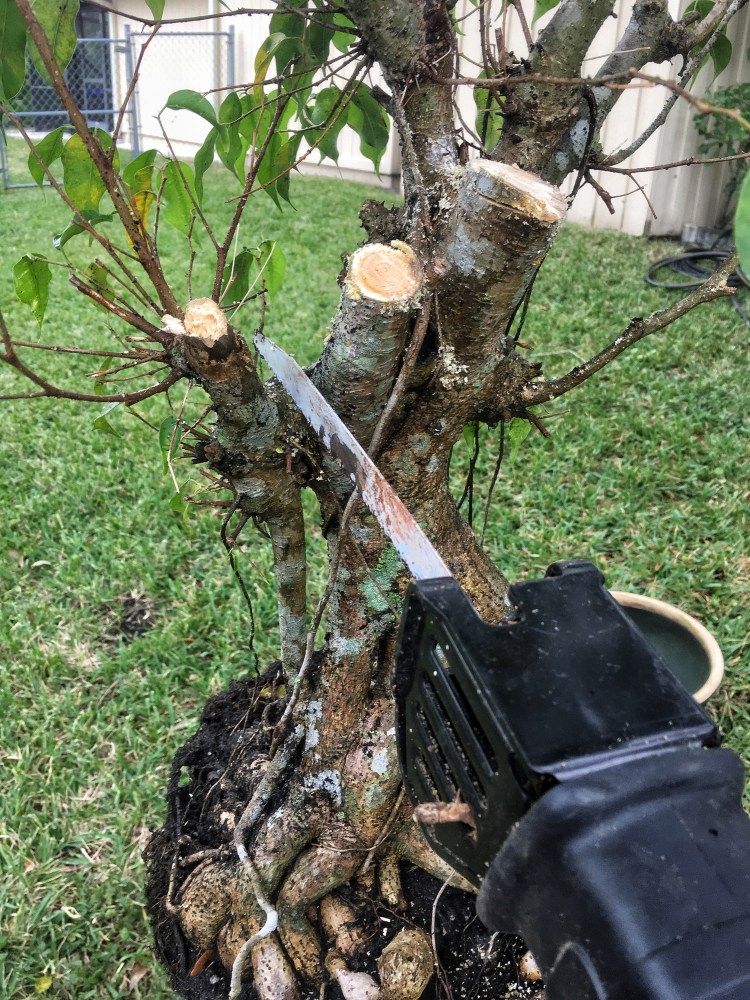 That’s how you fix obverse taper and give some movement to a big tree. Ficus are perfect for the technique, especially a benjamina. Granted they have the branch dieback problem but they heal big wounds better than any other ficus we use for bonsai. I think it’s because of the trees apical dominance and auxin creation that makes it excellent at the compartmentalization needed for fast wound healing.