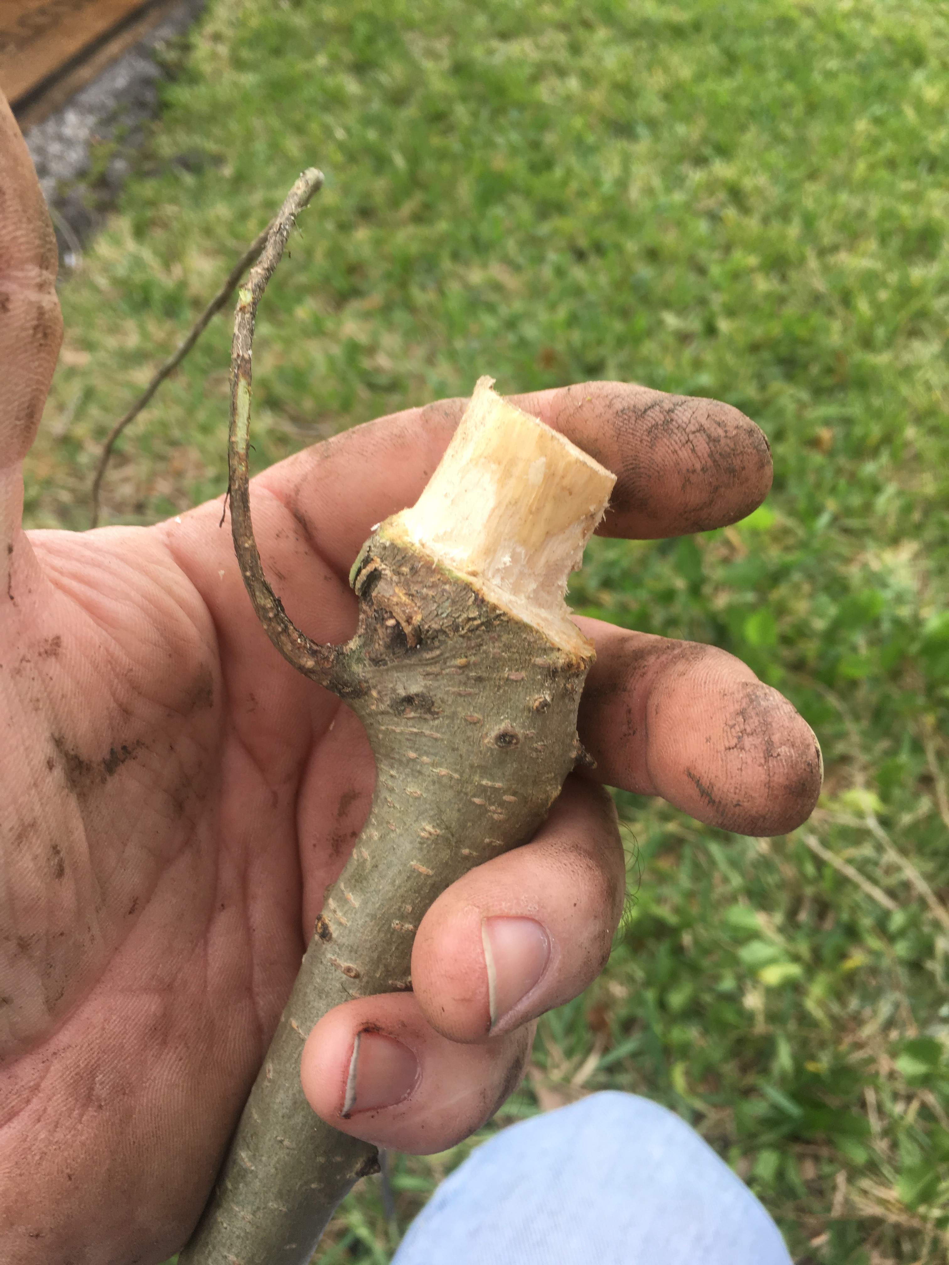 Yes, I literally drilled a hole in the trunk, whittled down a branch end, and stuck it into a hole. We will be calling it a “peg” graft. Just don’t do a google search for pegging.