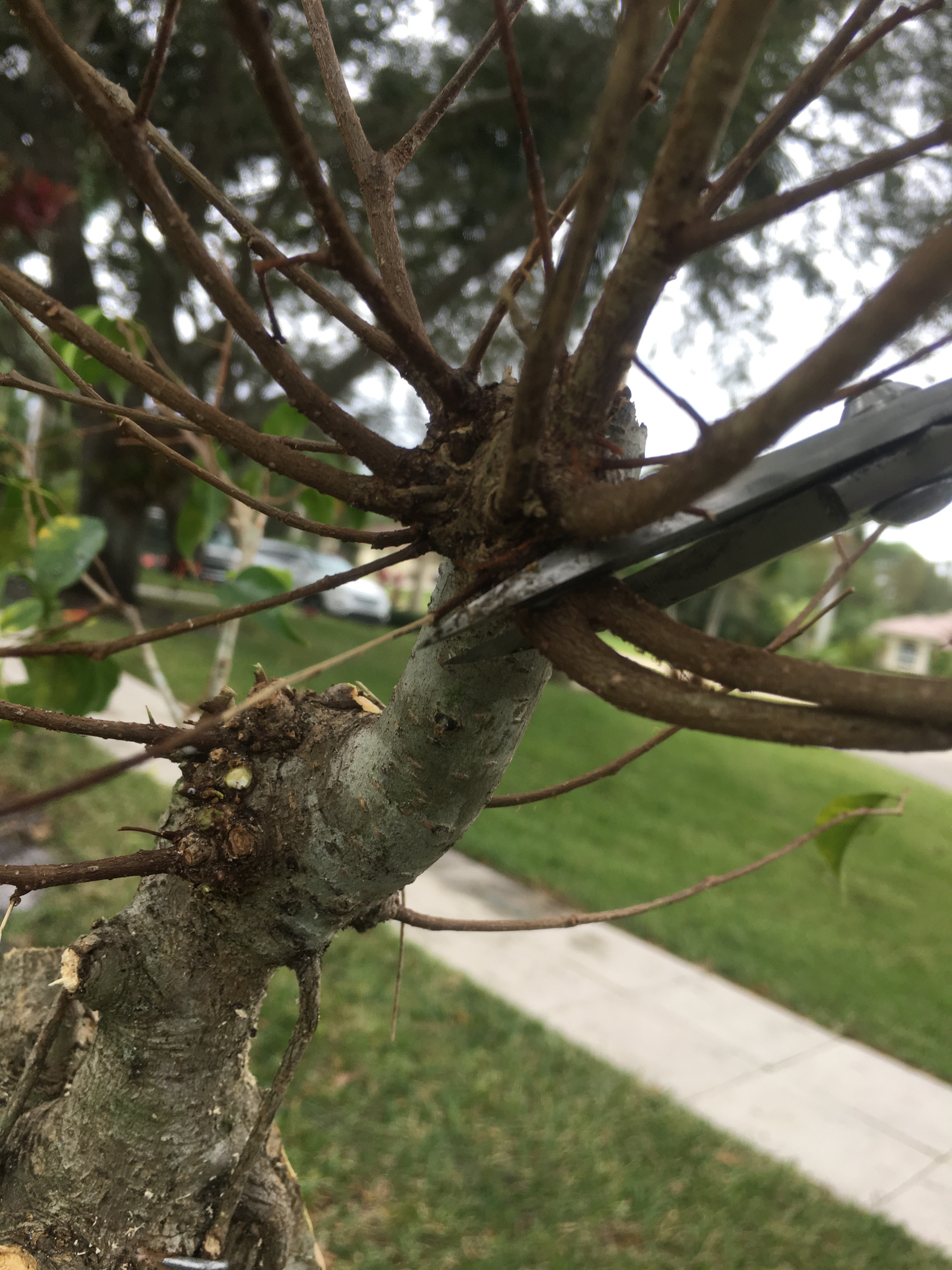This one has shoots lower that will be easier to work with and it will help heal that big wound at the tip of my saw.