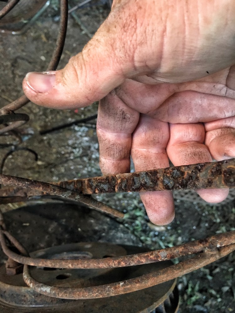 I knocked off the big chunks and sprayed clear coat on the steel.
