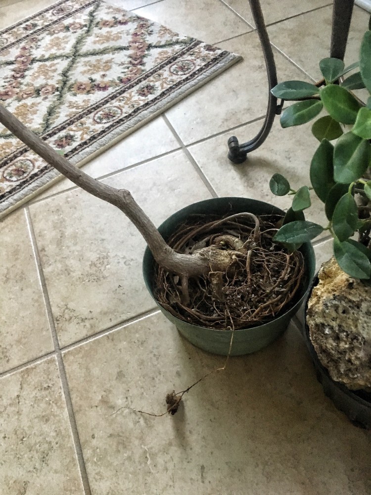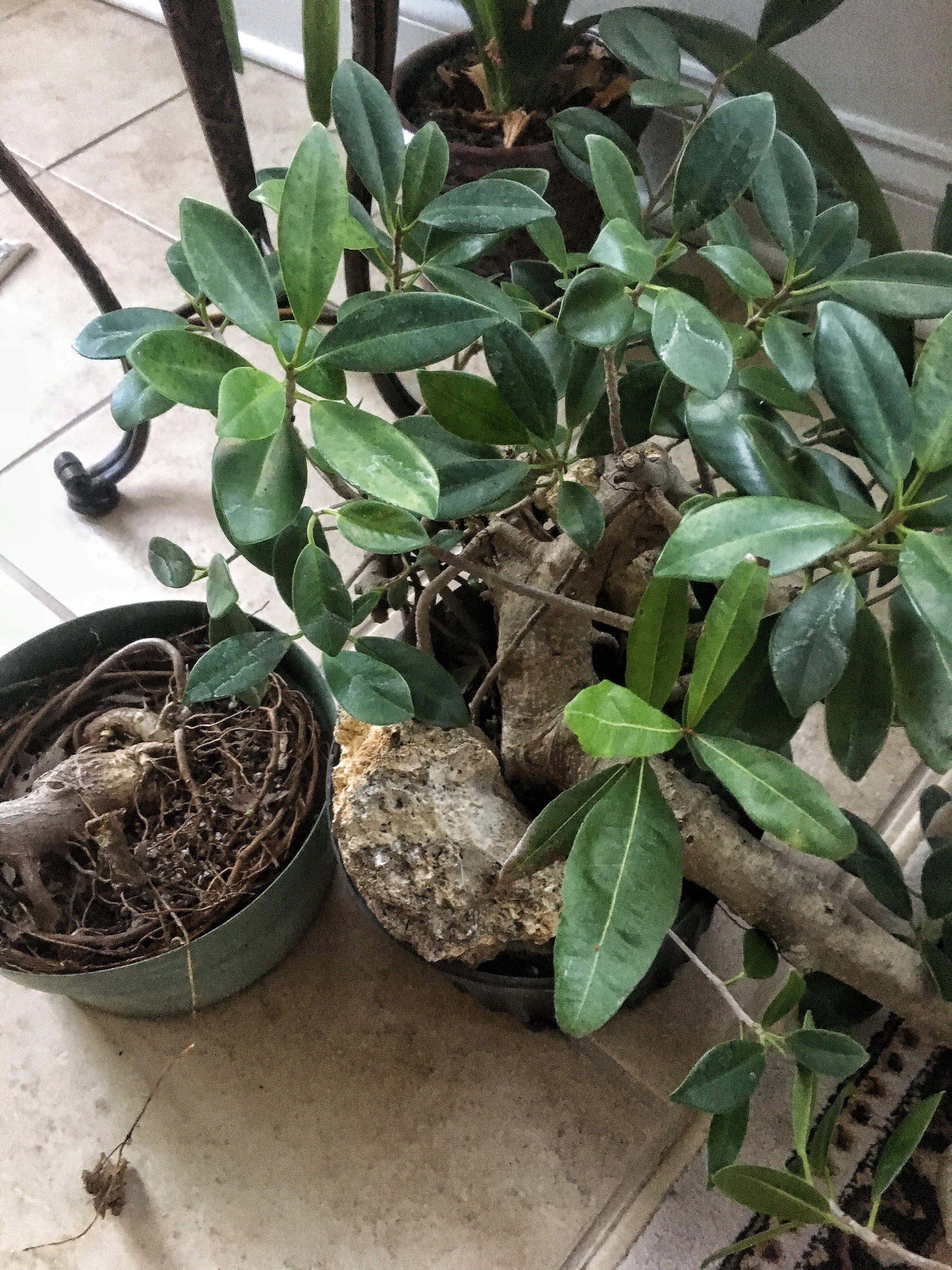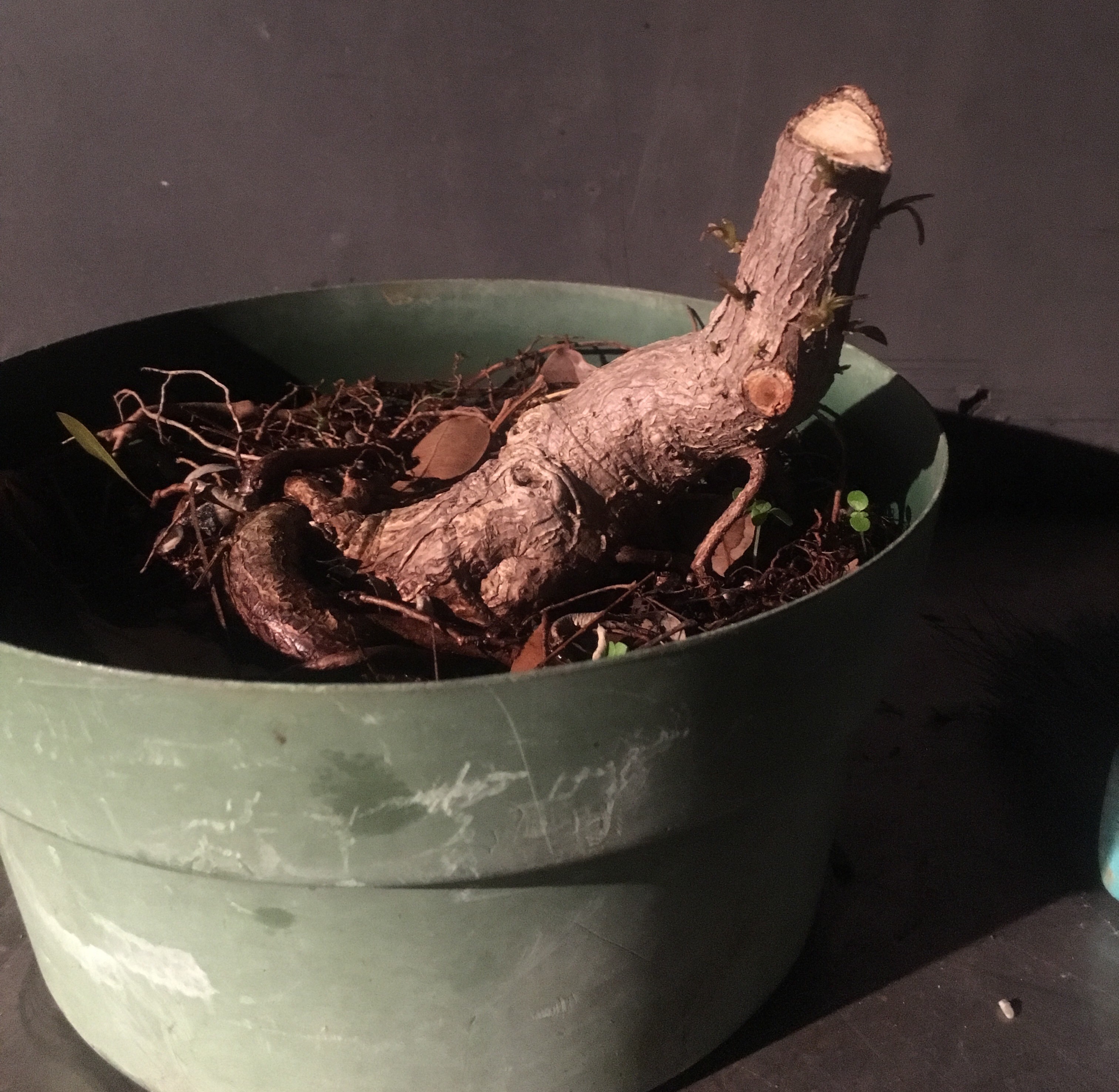 The ficus salicaria was just a gag demo. I trunk chopped it. Ruthlessly. Here it is today.