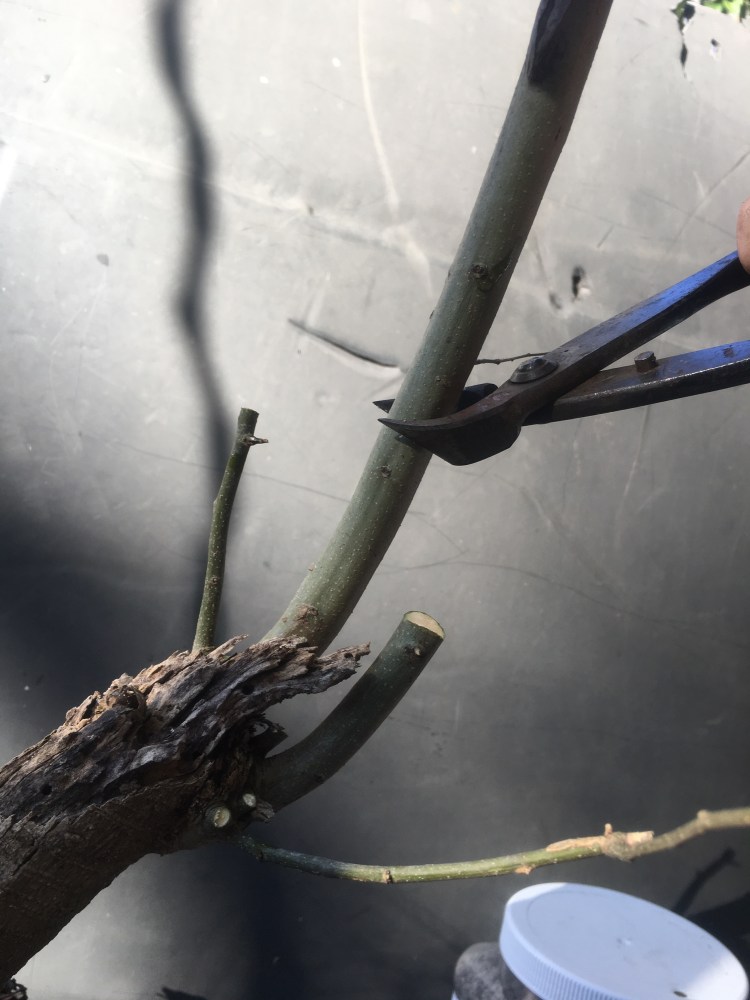 But it is growing strong. Let’s do some chopping to induce backbudding.