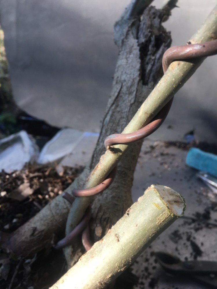 Now a little wire before I turn to the roots. This is so close to the trunk….