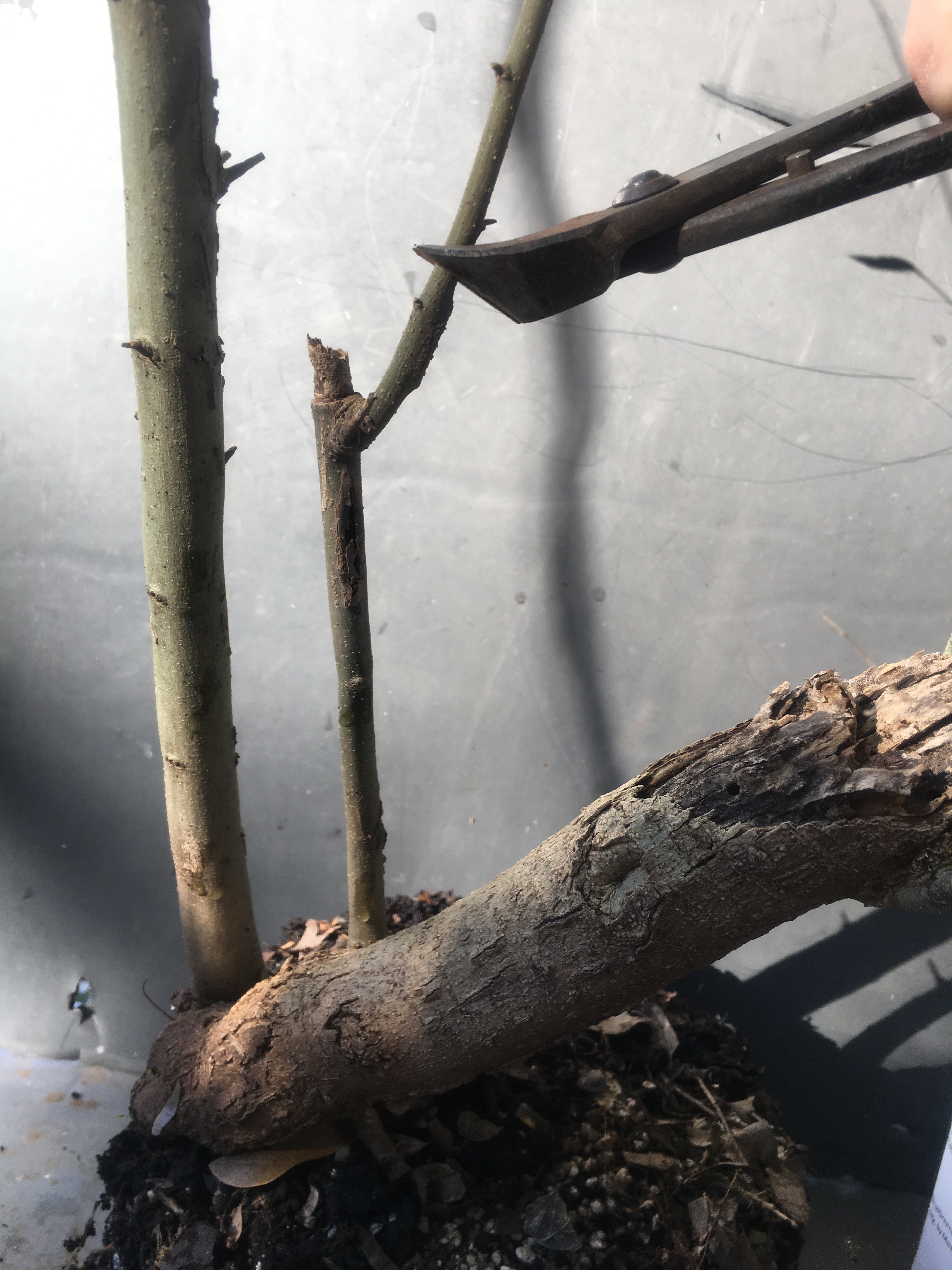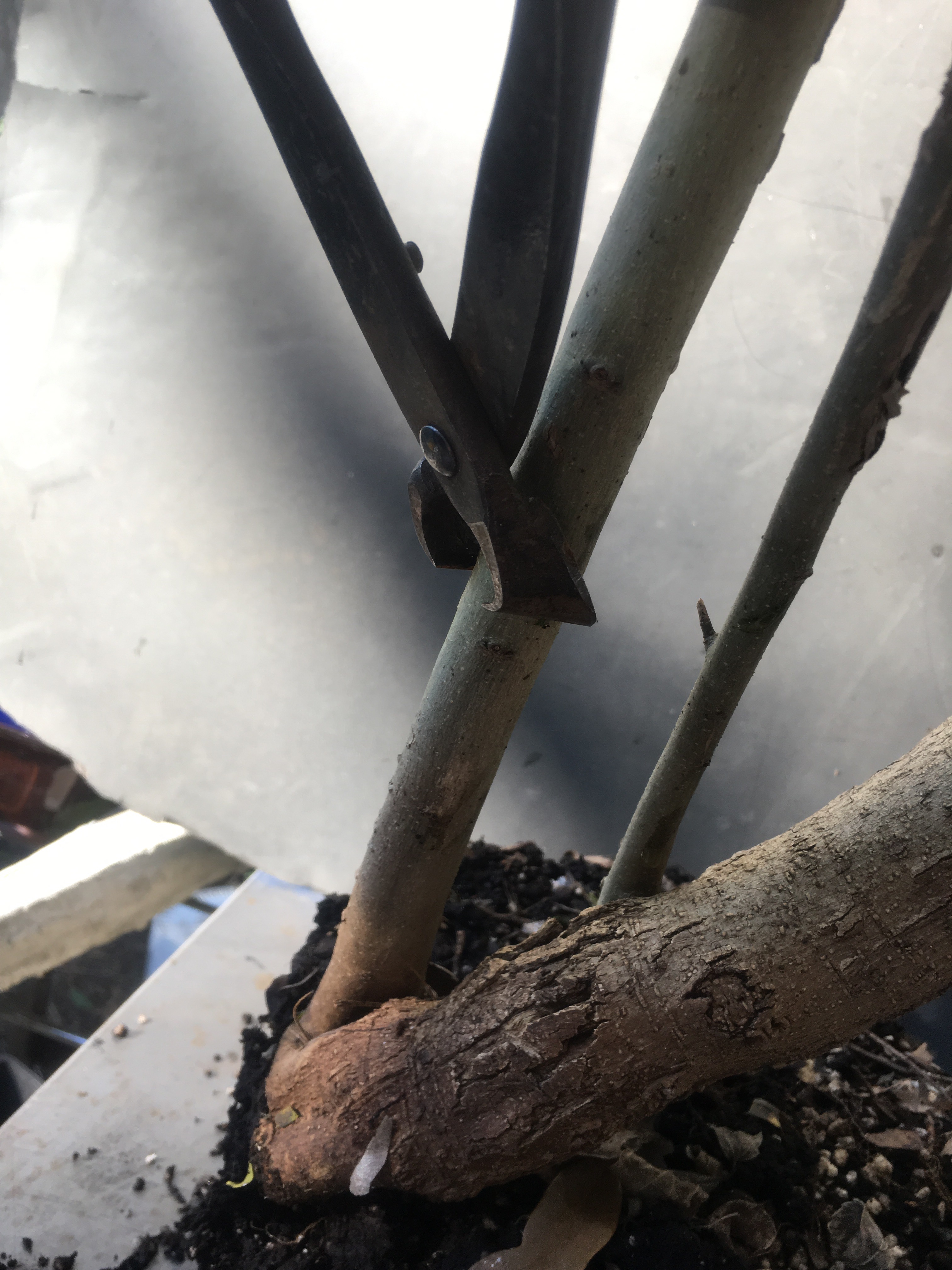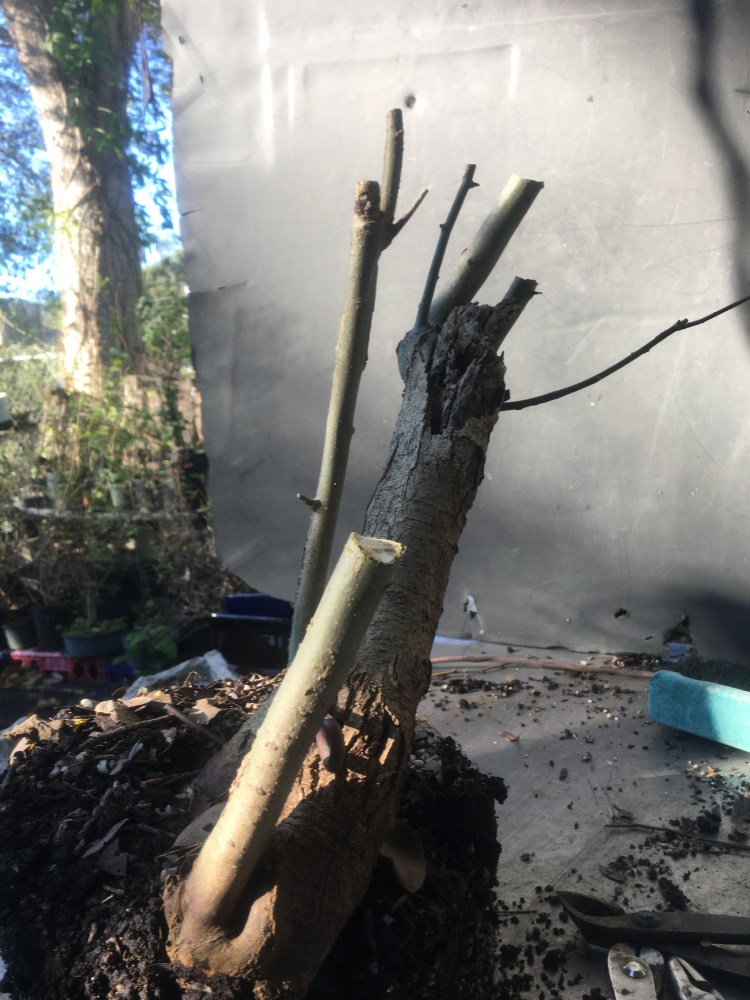 But it is growing strong. Let’s do some chopping to induce backbudding.