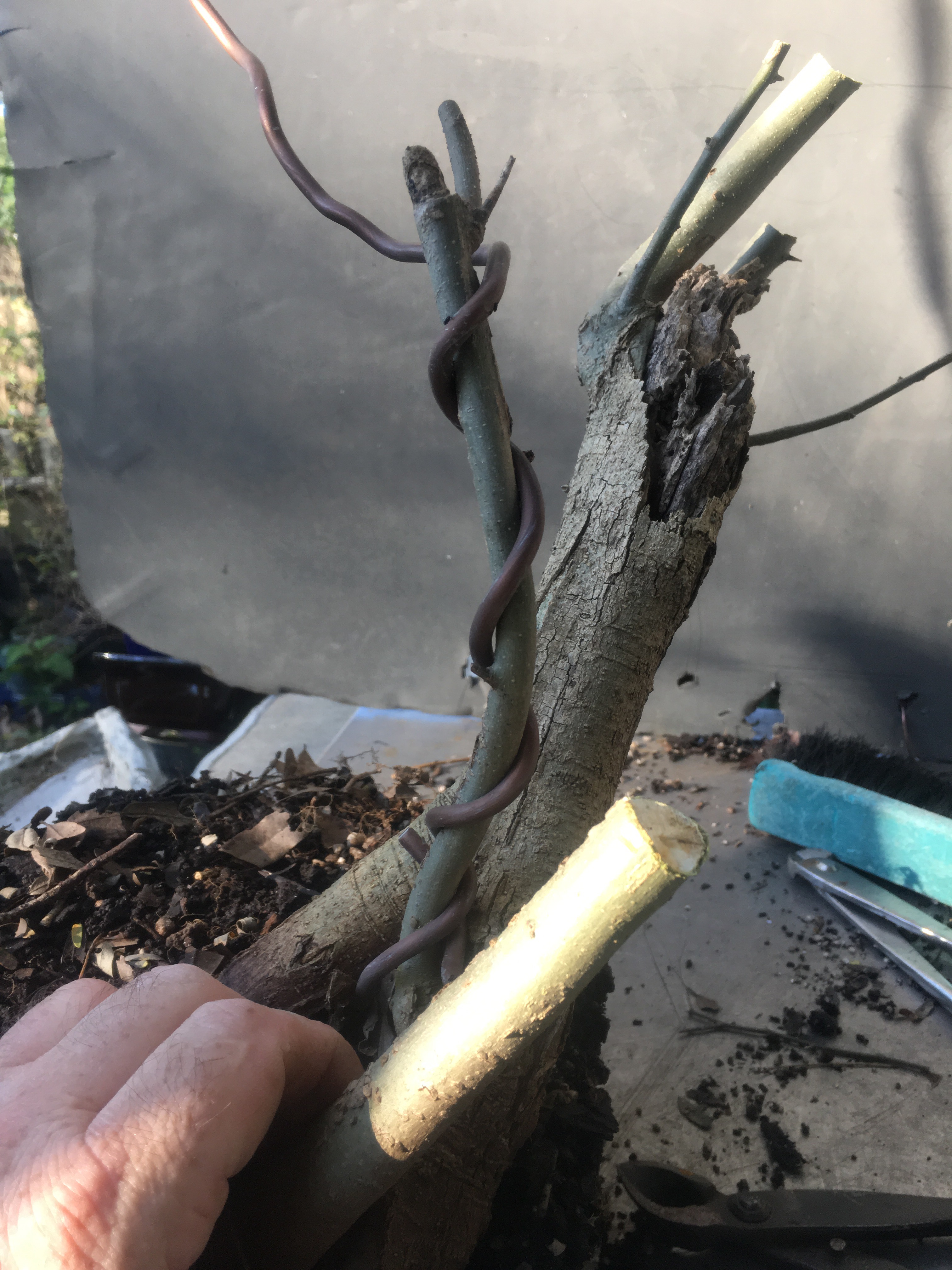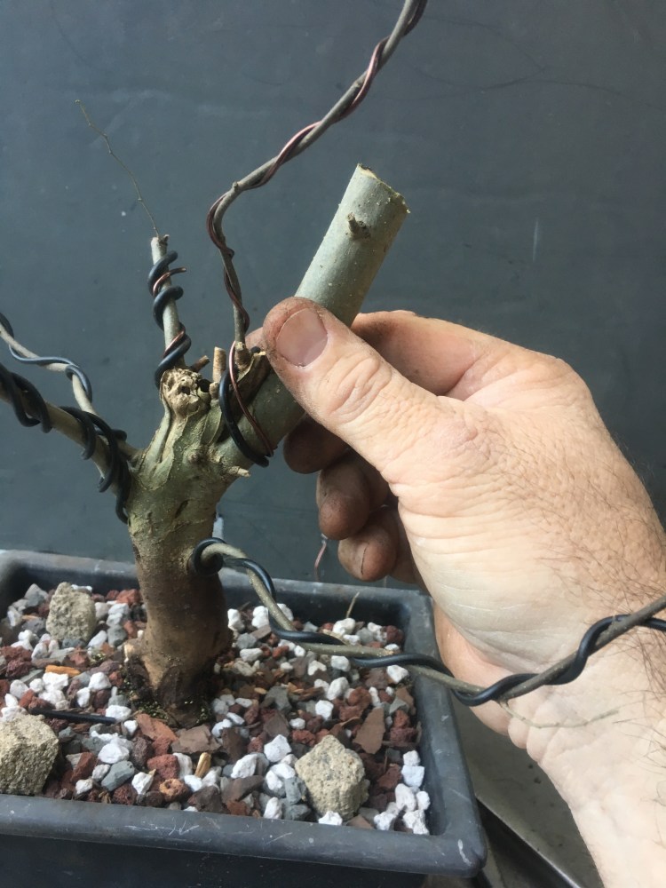 Now a little wire before I turn to the roots. This is so close to the trunk….