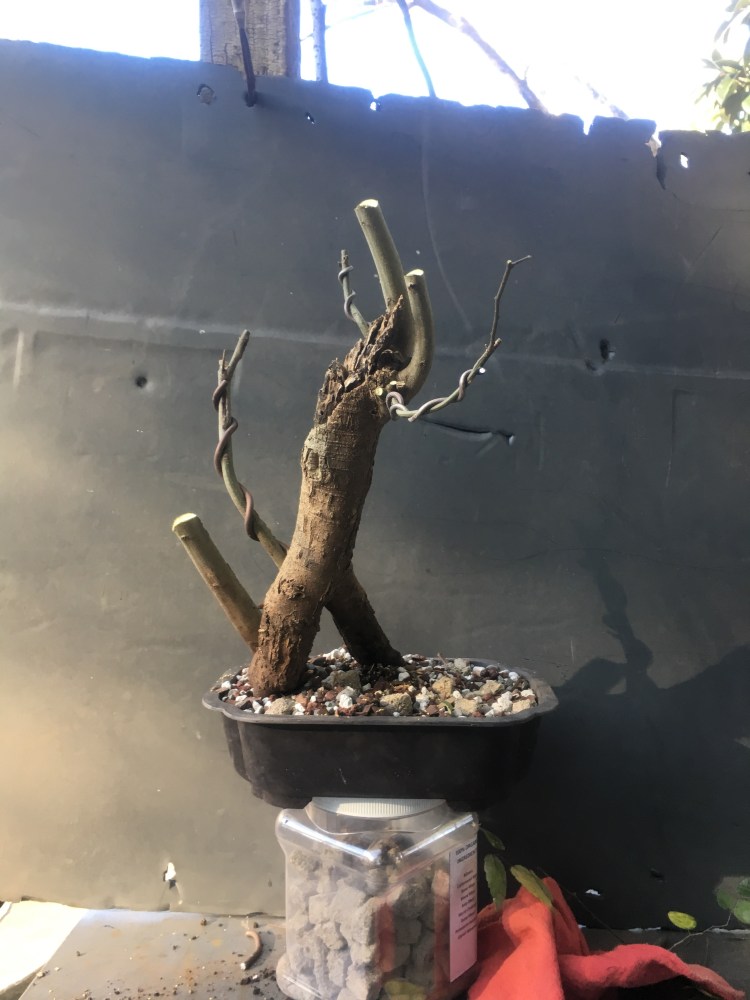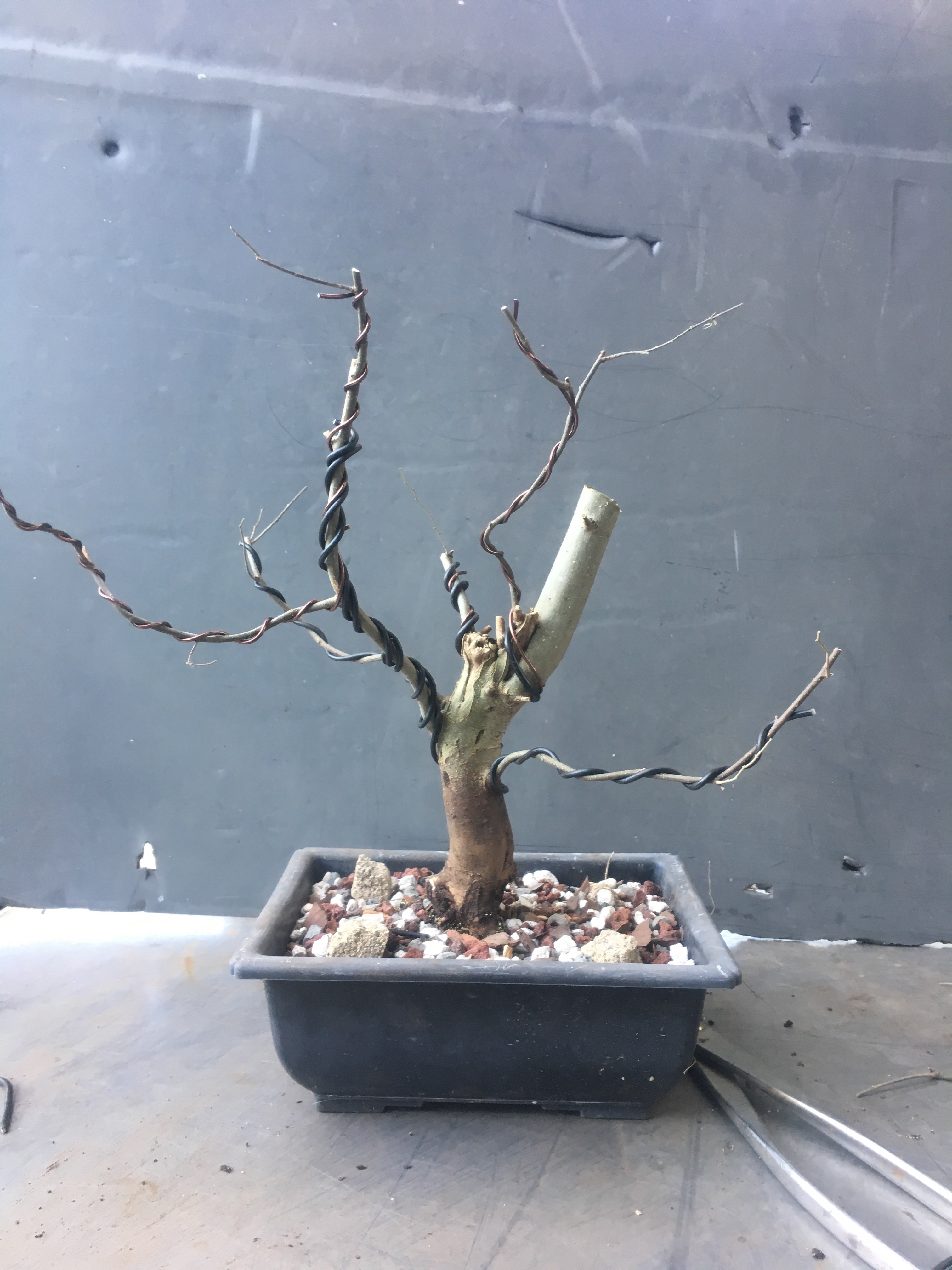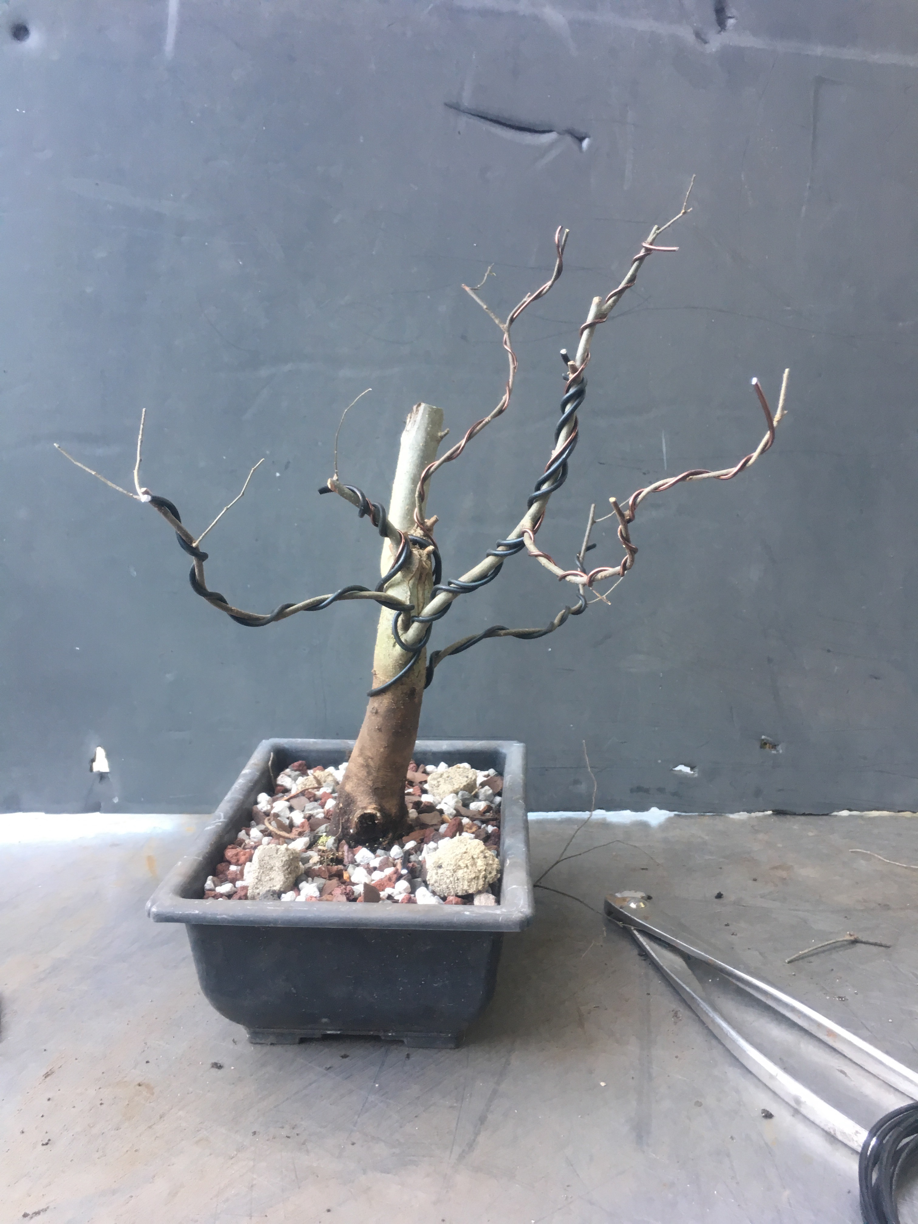 Ok, a lot. You know me, I wire. I’m of the opinion that if you’re not using wire, it’s not modern bonsai. Here’s an analogy for you: traditionally, man painted with his fingers. Then Ug, the Picasso of the cavemen, picked up a feather, the first paintbrush, and revolutionized the art of painting. It’s the same principle with wire on bonsai. The practice is less than a hundred years old, so most definitely not traditional, but that’s how modern bonsai practitioners make trees. That doesn’t mean not to use clip and grow, I use both techniques, even on the same tree, but if you’re not wiring, it’s like only using your fingers whilst painting a picture, you can only get to a certain level of refinement because of the limitations of your tools.