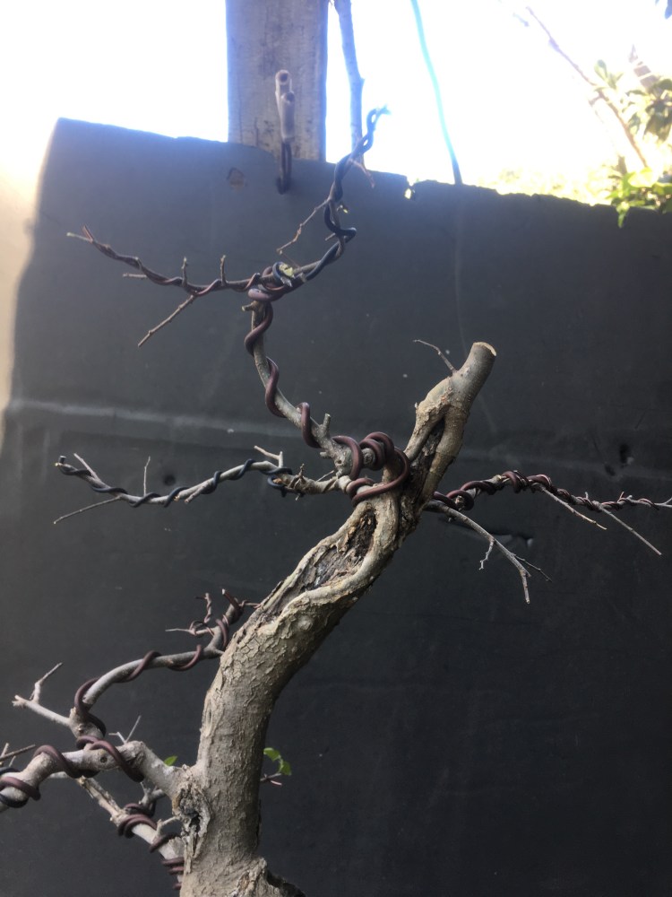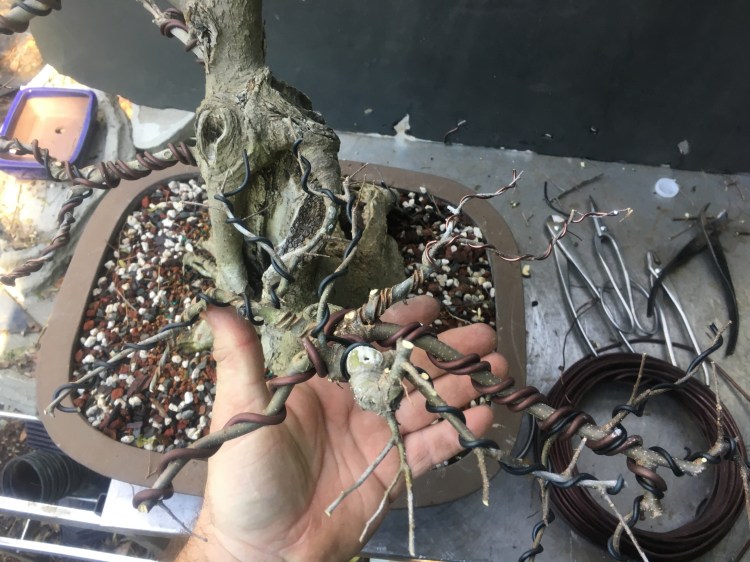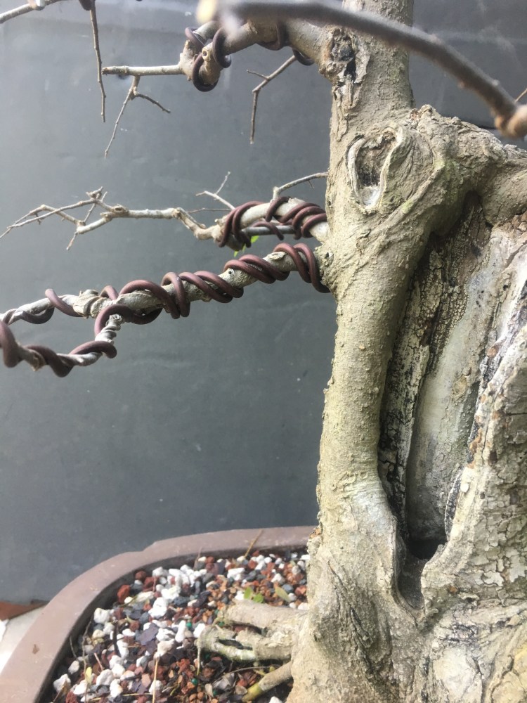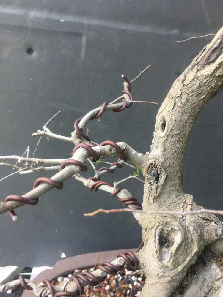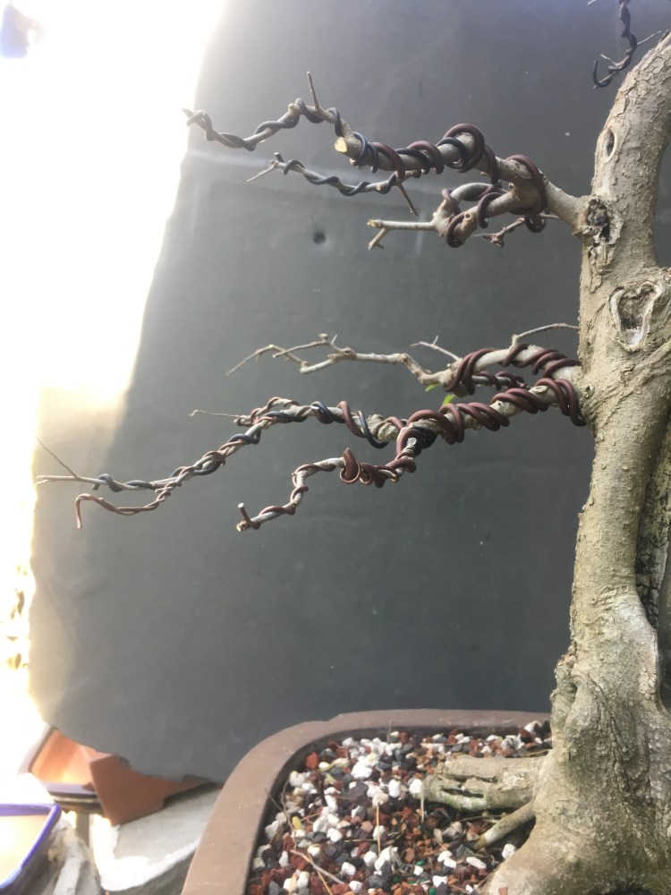 It’s gonna be all about the wire now. I have to transform the branches for young straight things into old, bent ones.