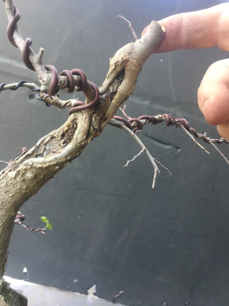 I’m not worried too much about the wire scars. That’ll make the branches even more mean looking.