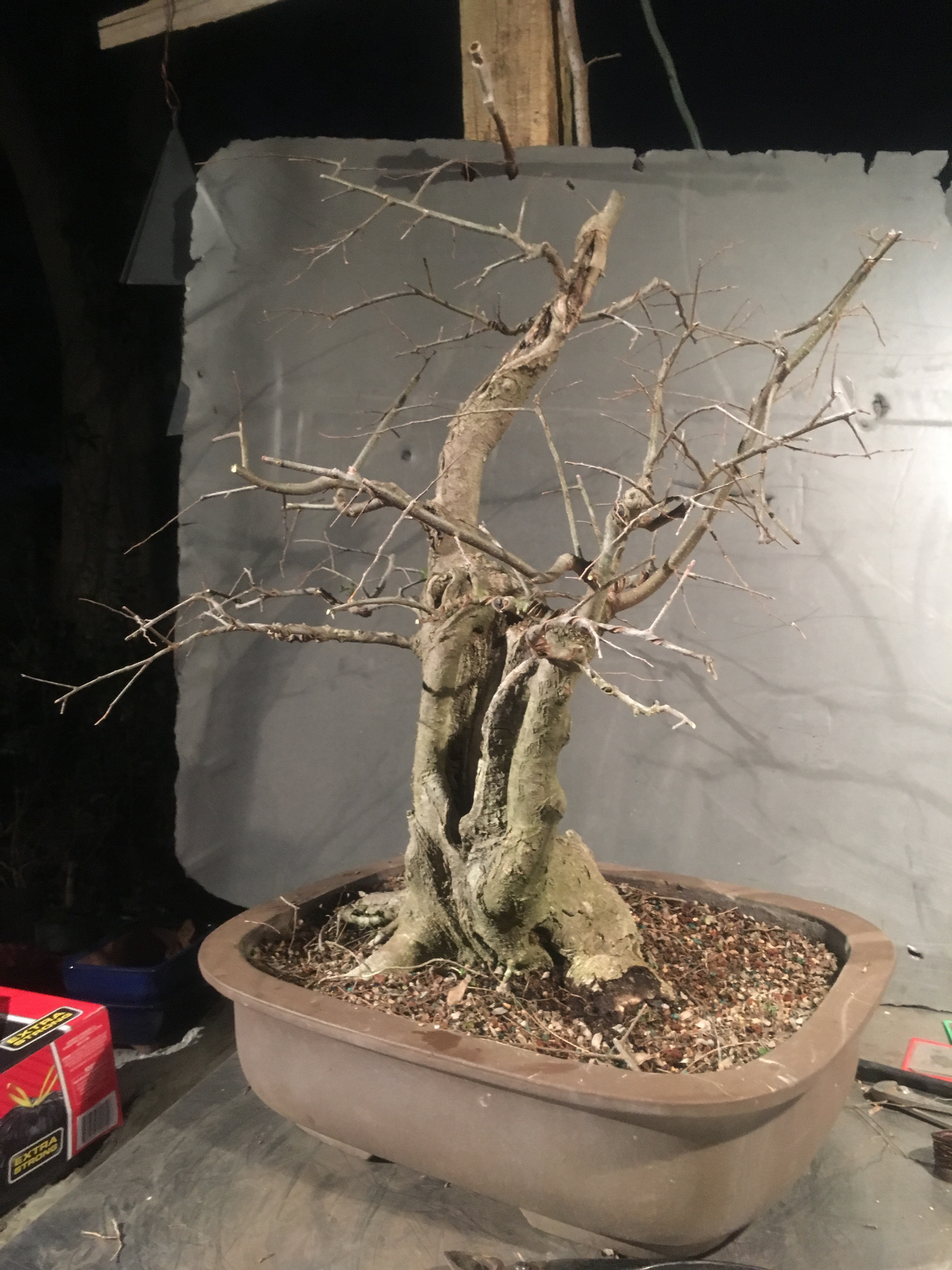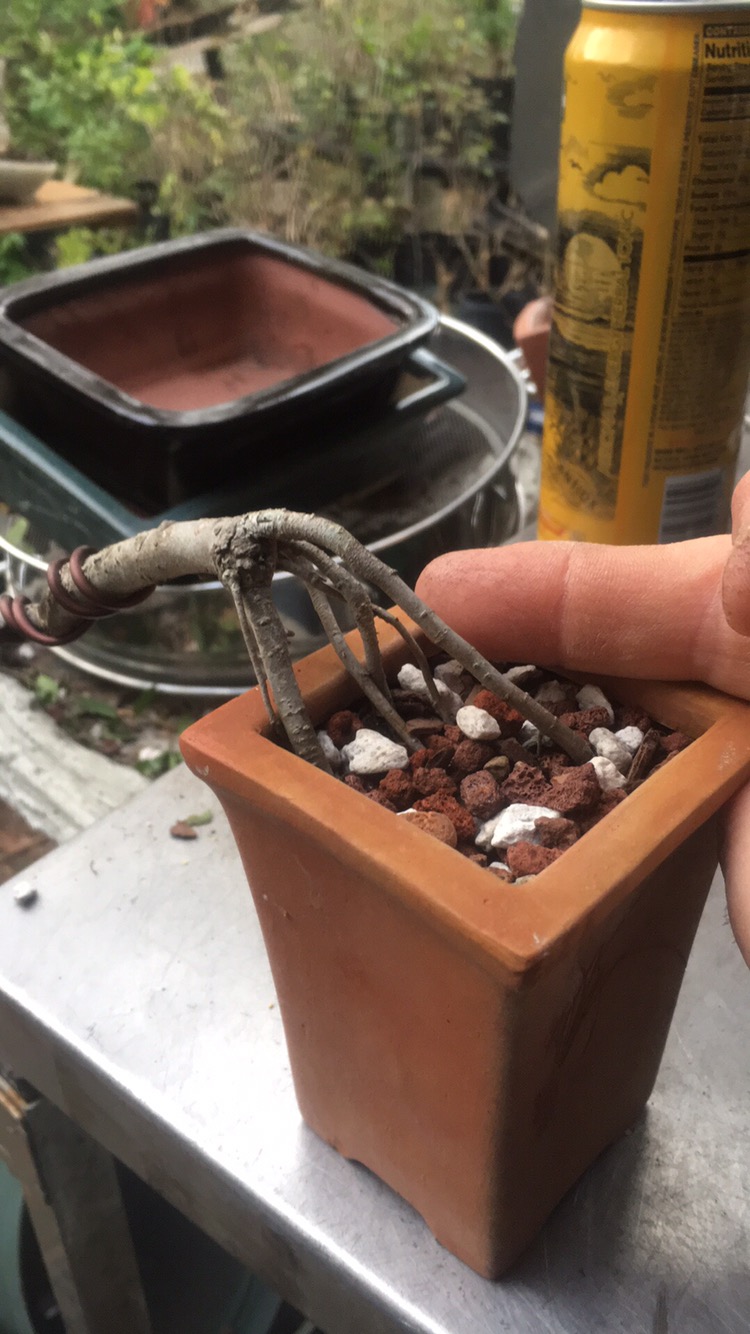It’s not the best example of an exposed root bonsai but it looks aged.