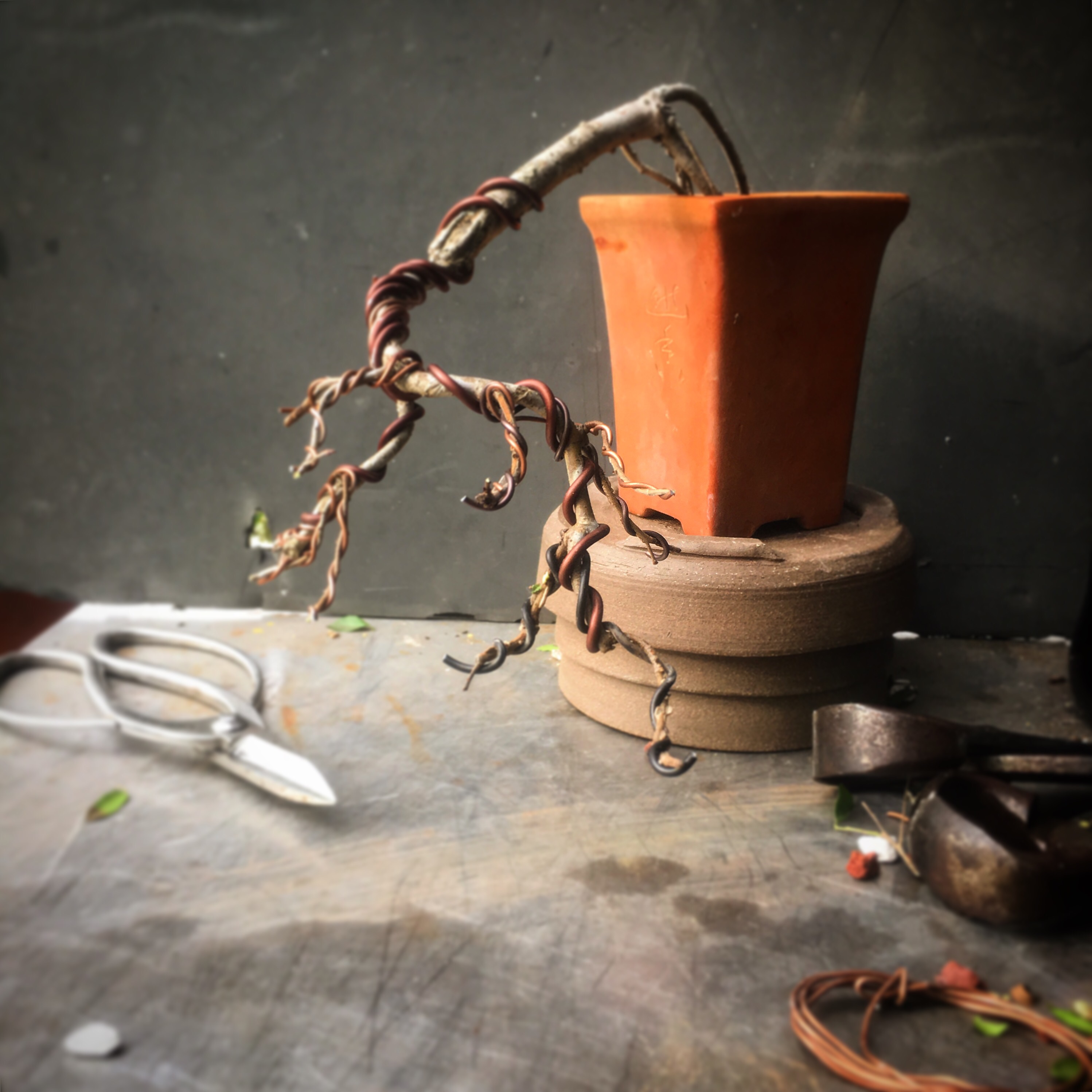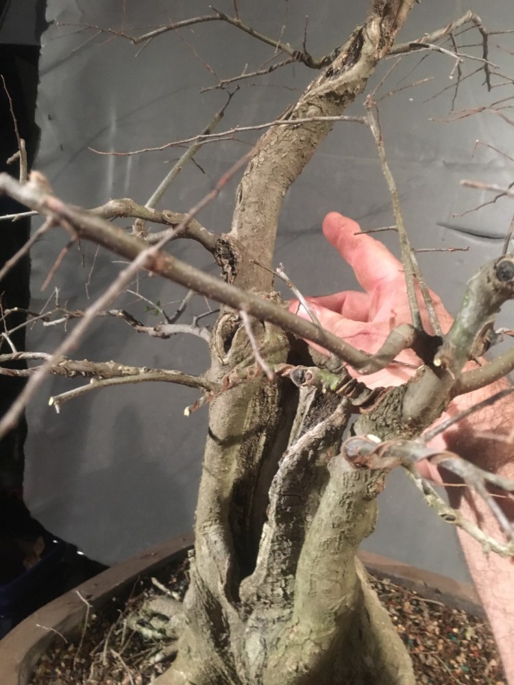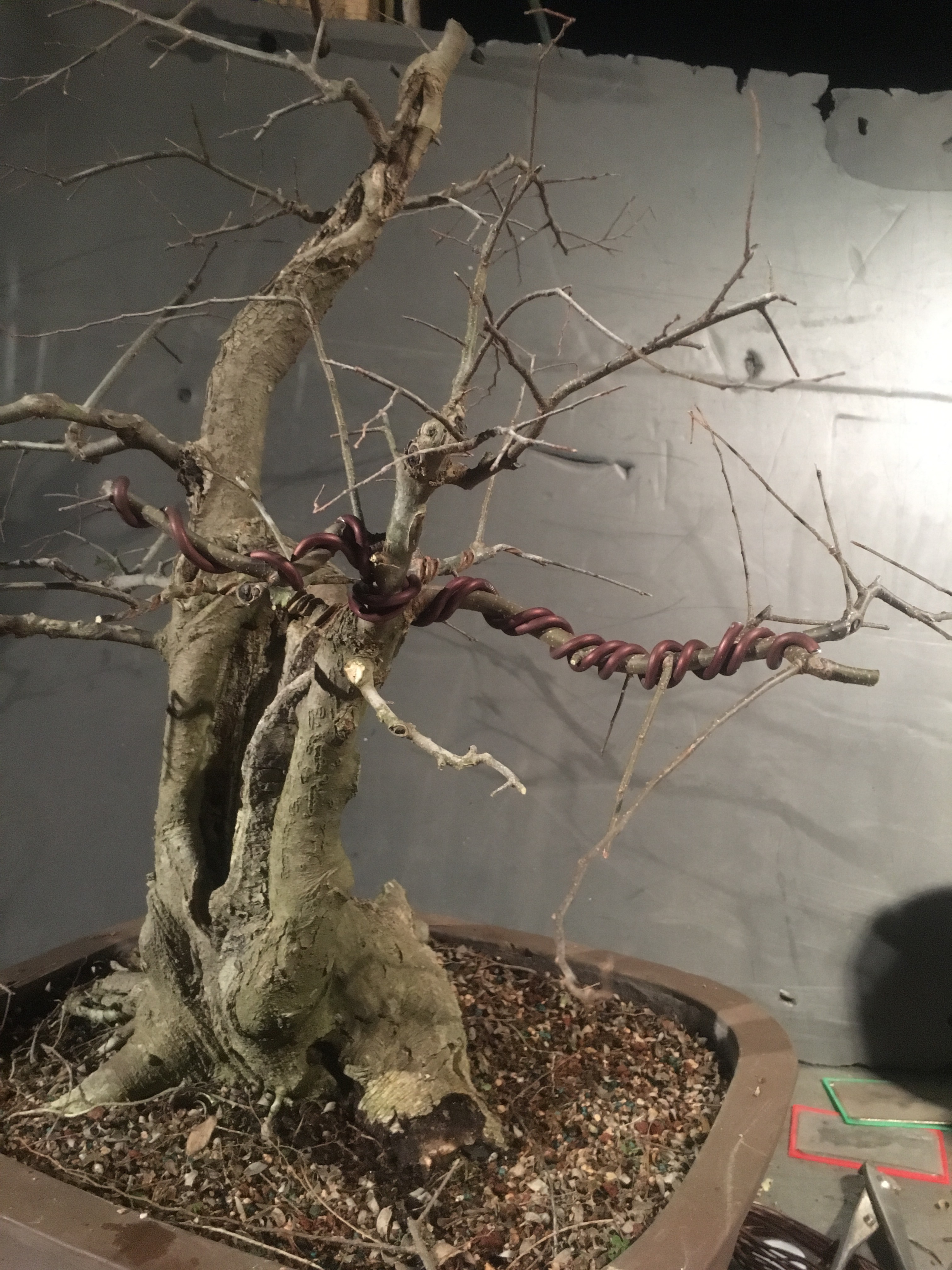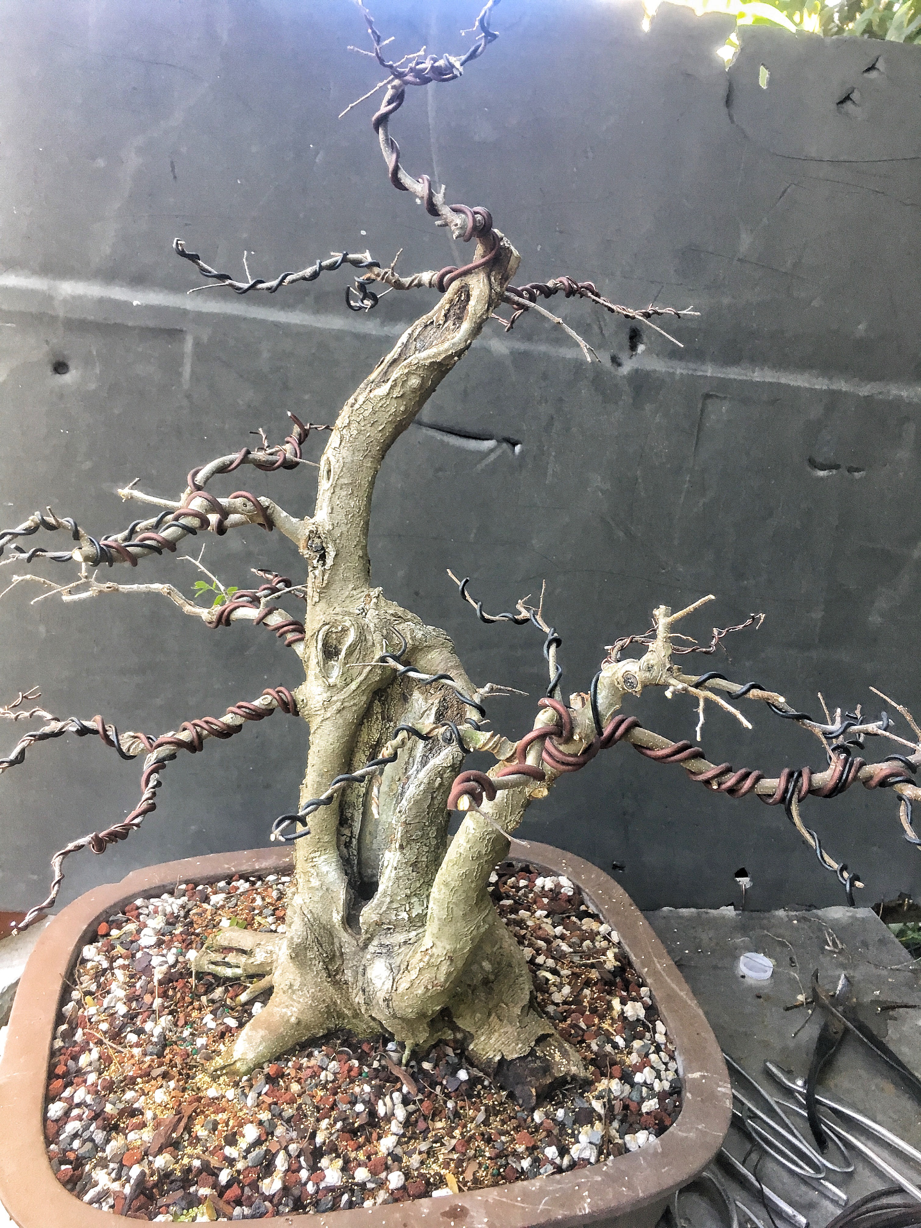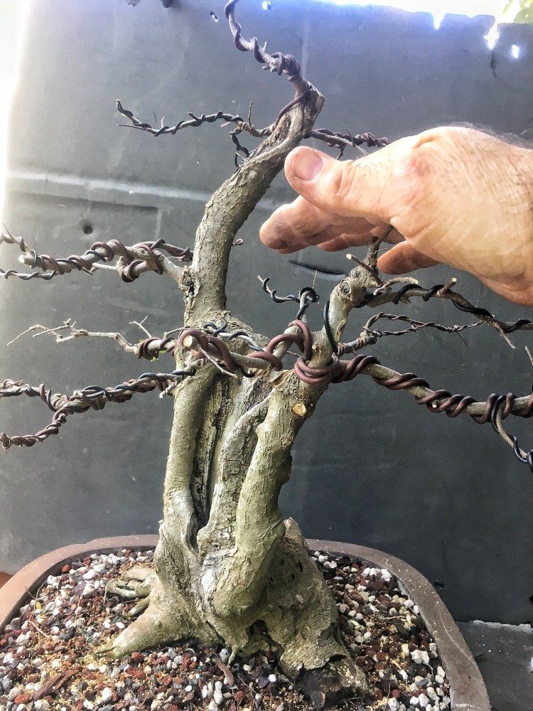 It’s gonna be all about the wire now. I have to transform the branches for young straight things into old, bent ones.