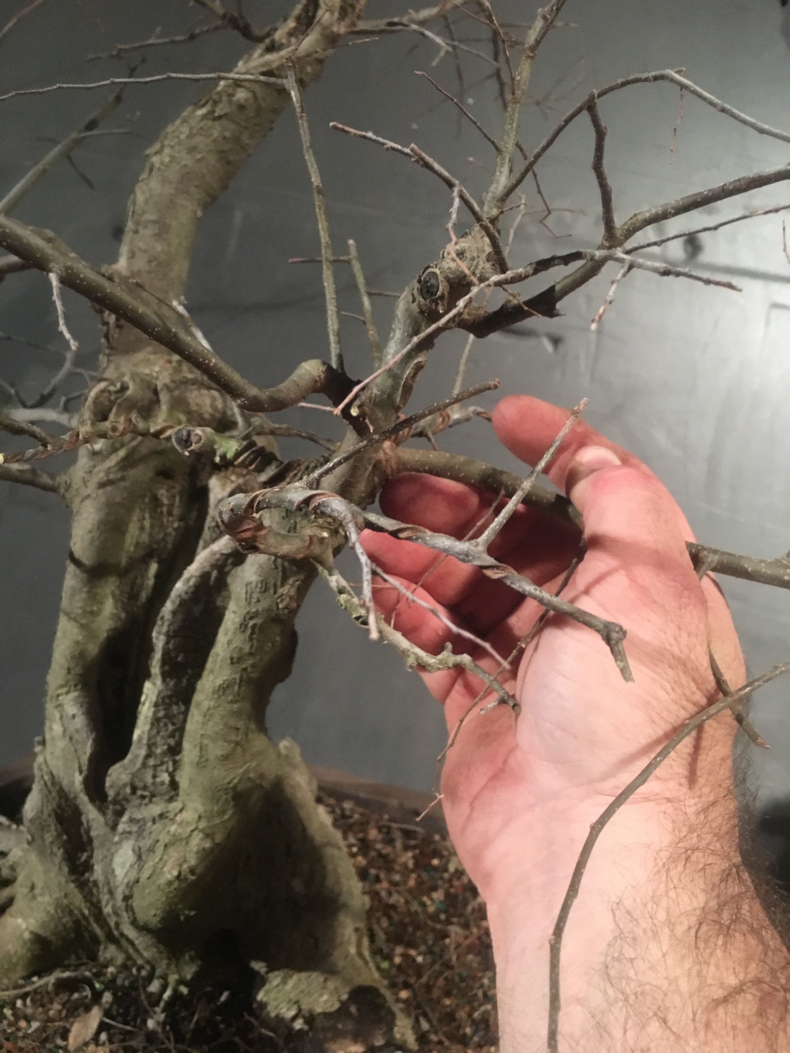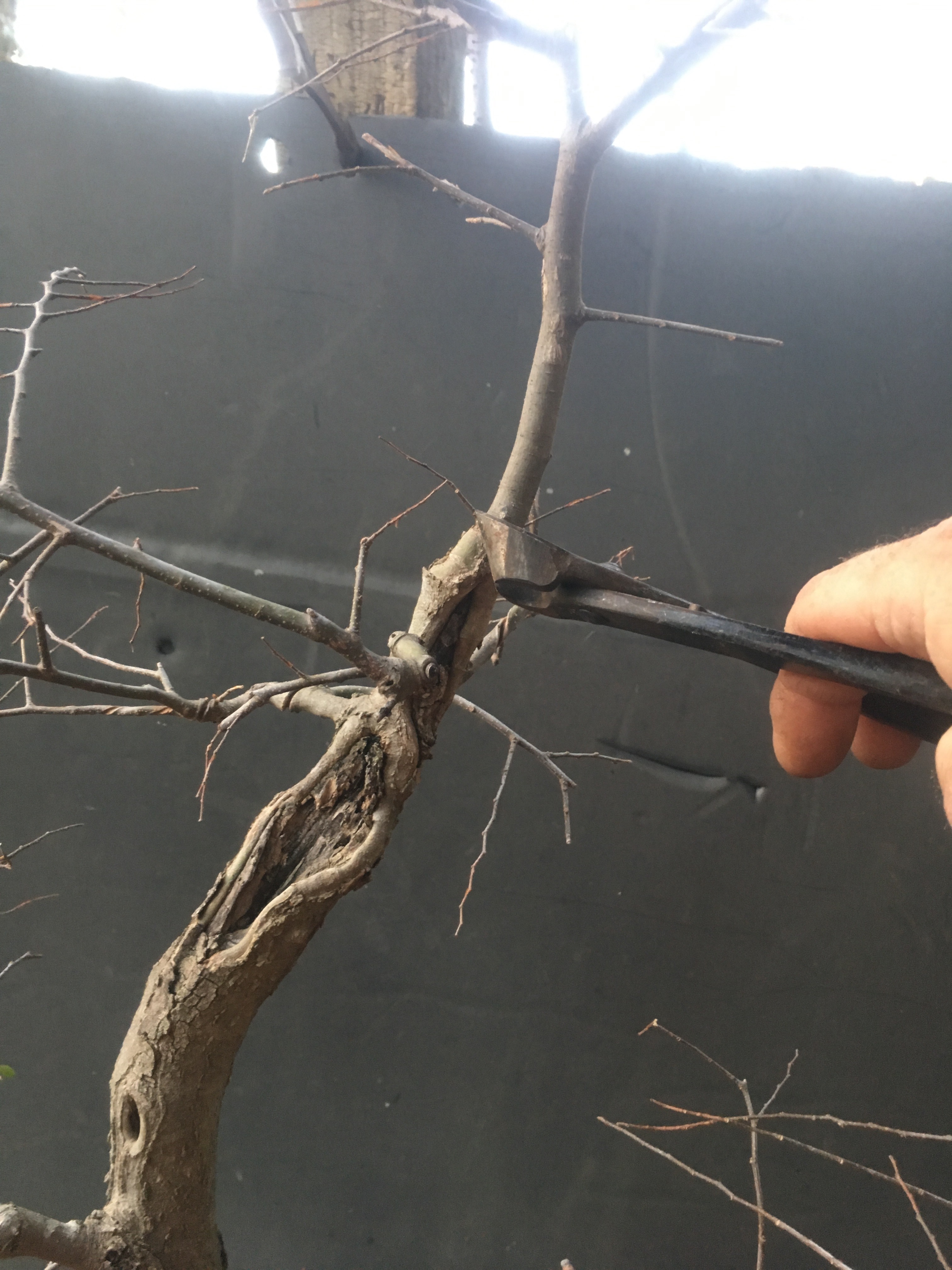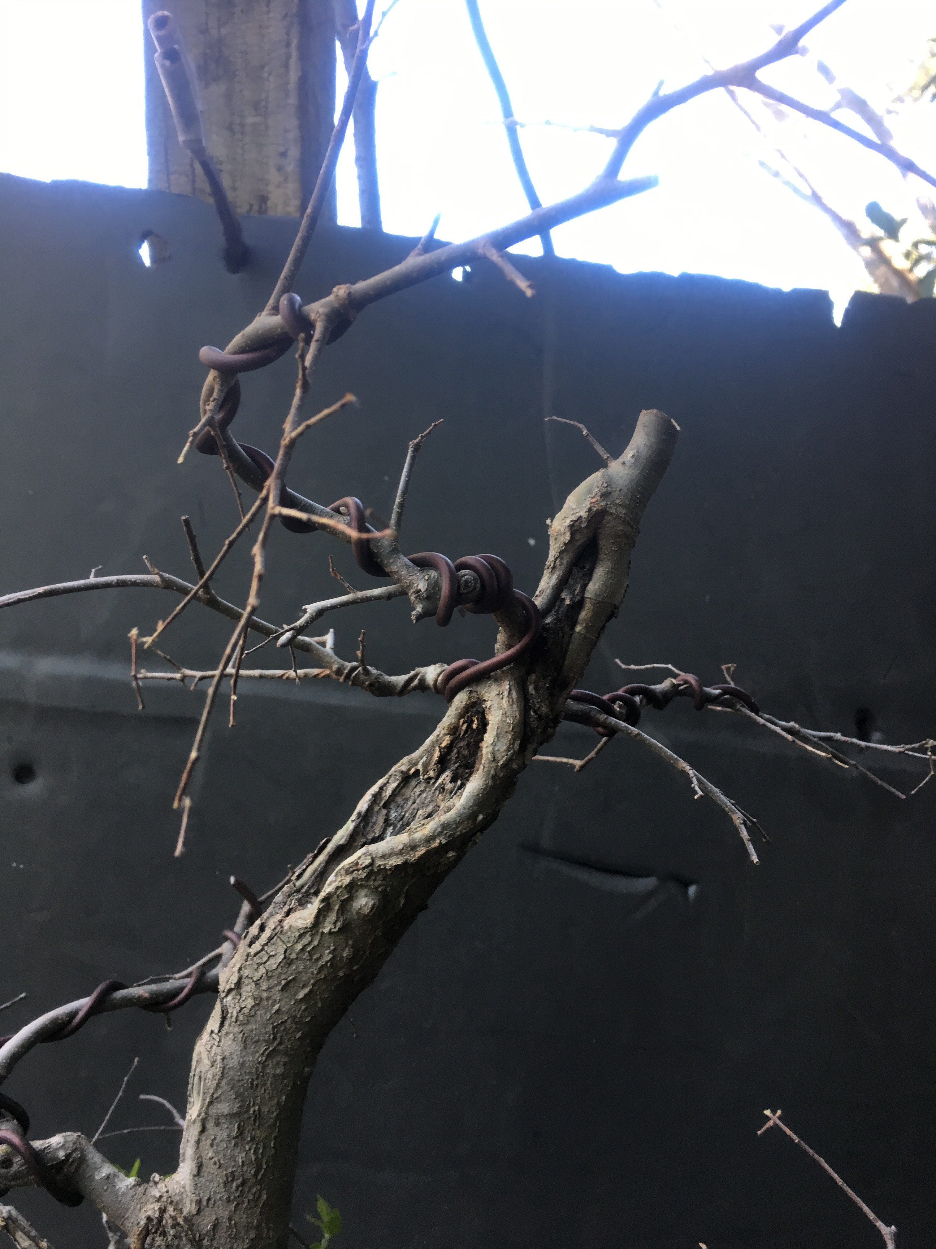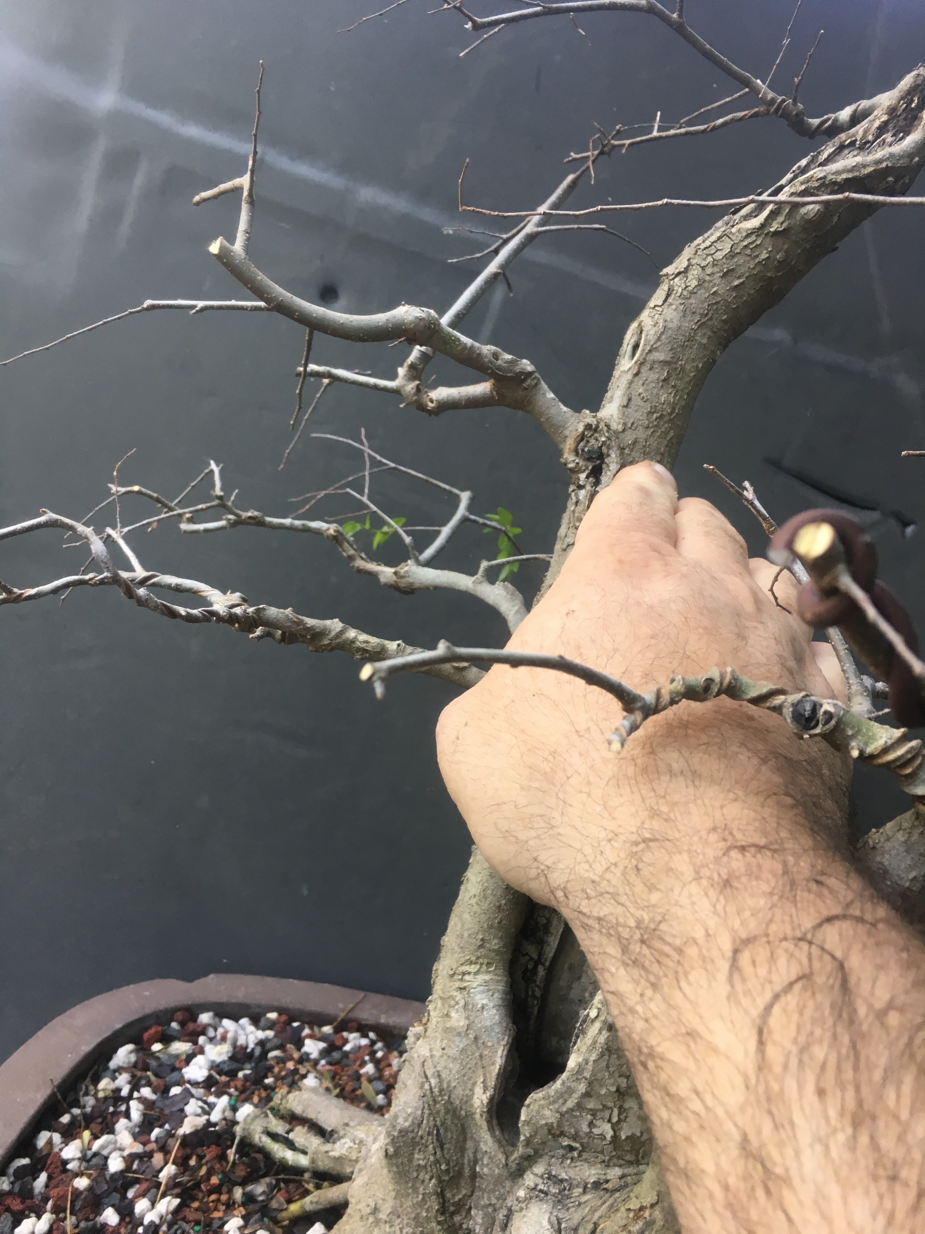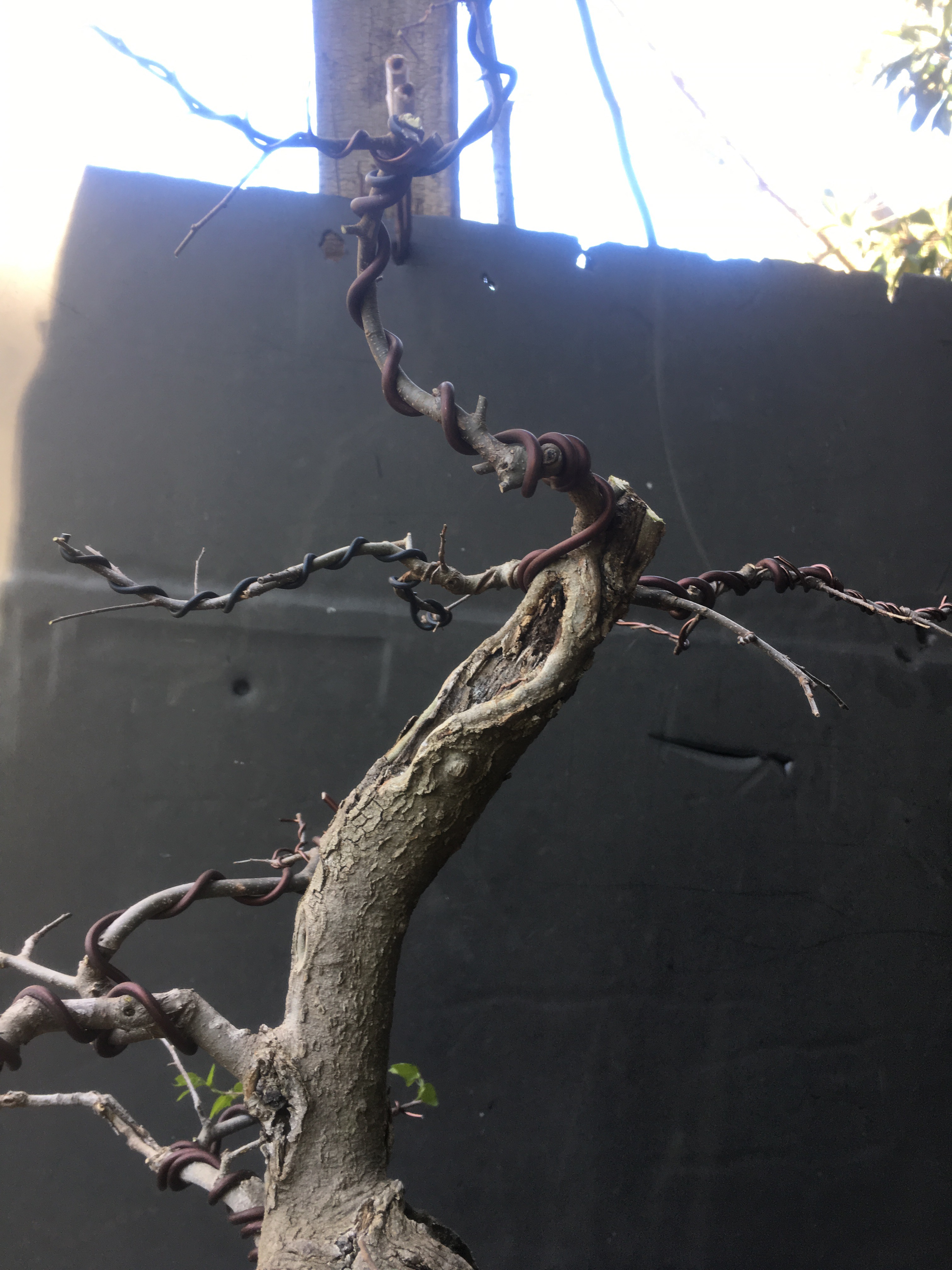 It’s gonna be all about the wire now. I have to transform the branches for young straight things into old, bent ones.